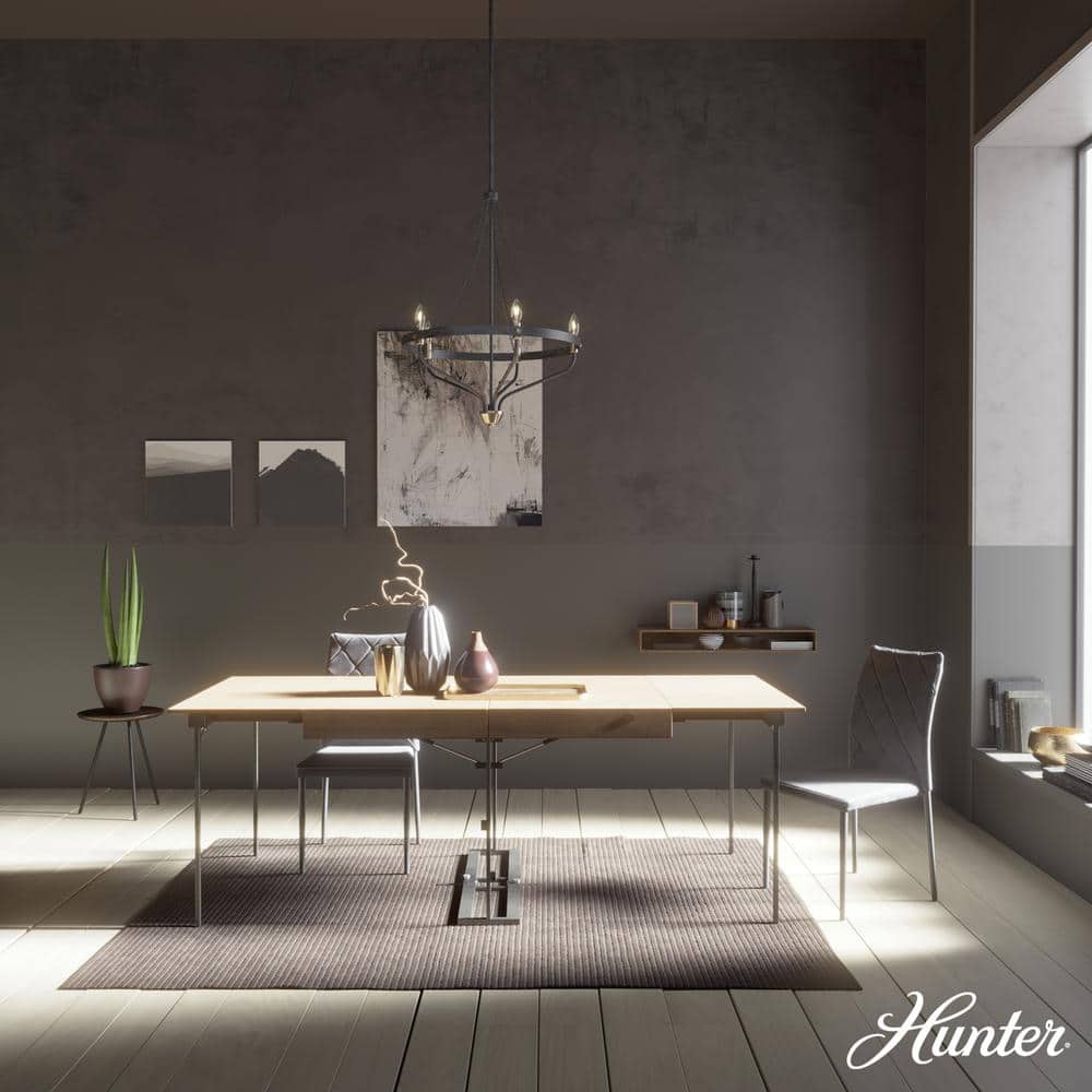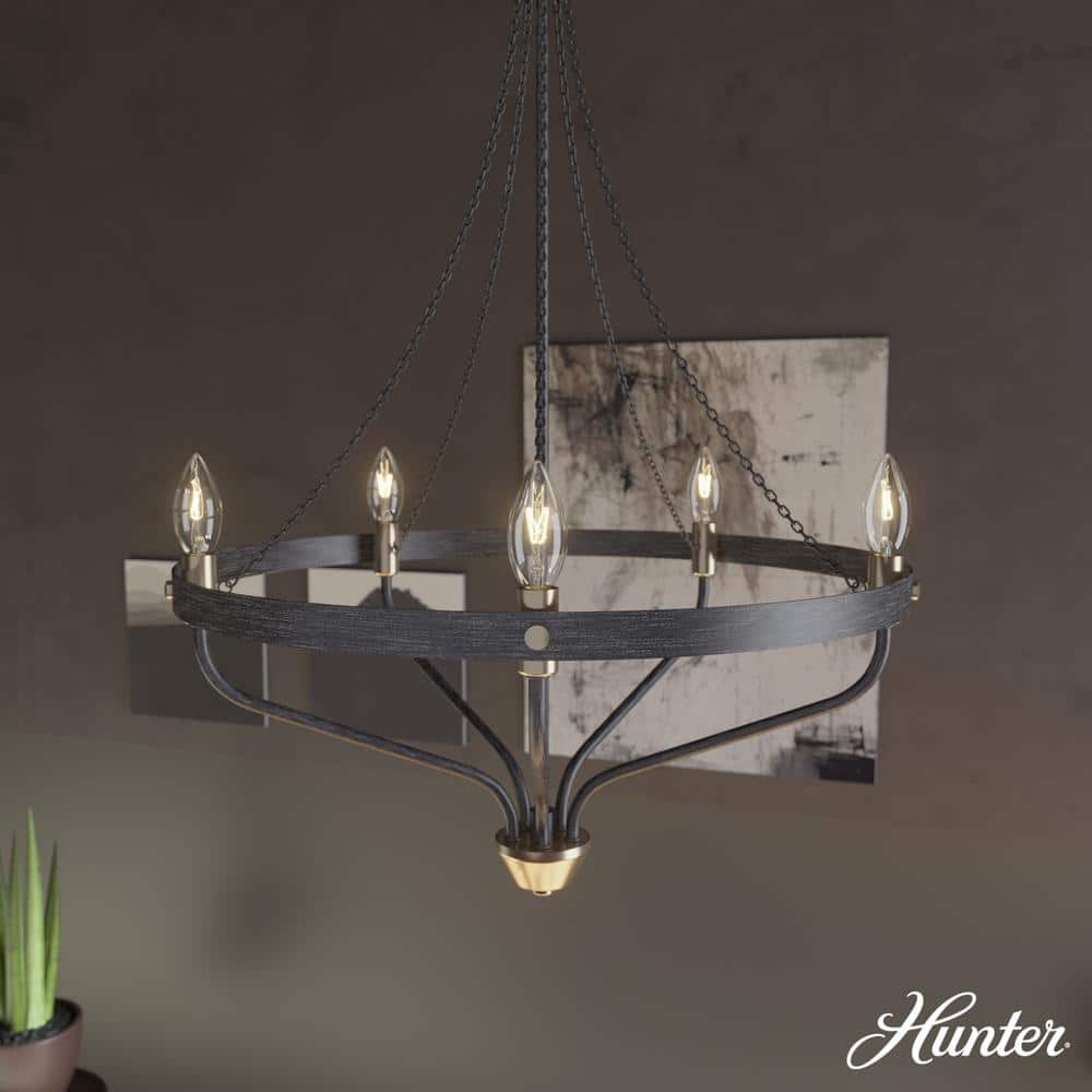 The Hunter Merlin 5-Light Chandelier combines the alluring warmth of rustic design with modern industrial aesthetics. Crafted from durable metals, this chandelier offers adjustable hanging lengths and dimmable lighting options, making it a versatile addition to any space that seeks charm and sophistication.