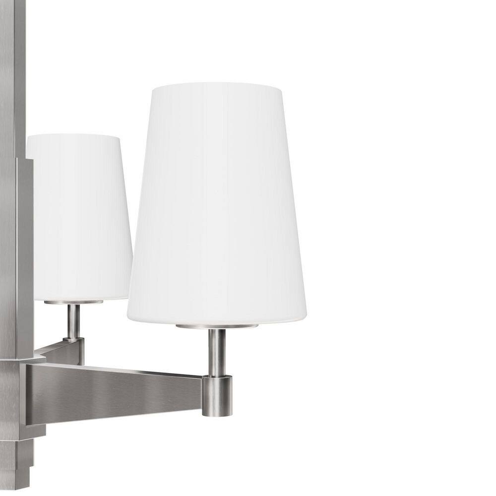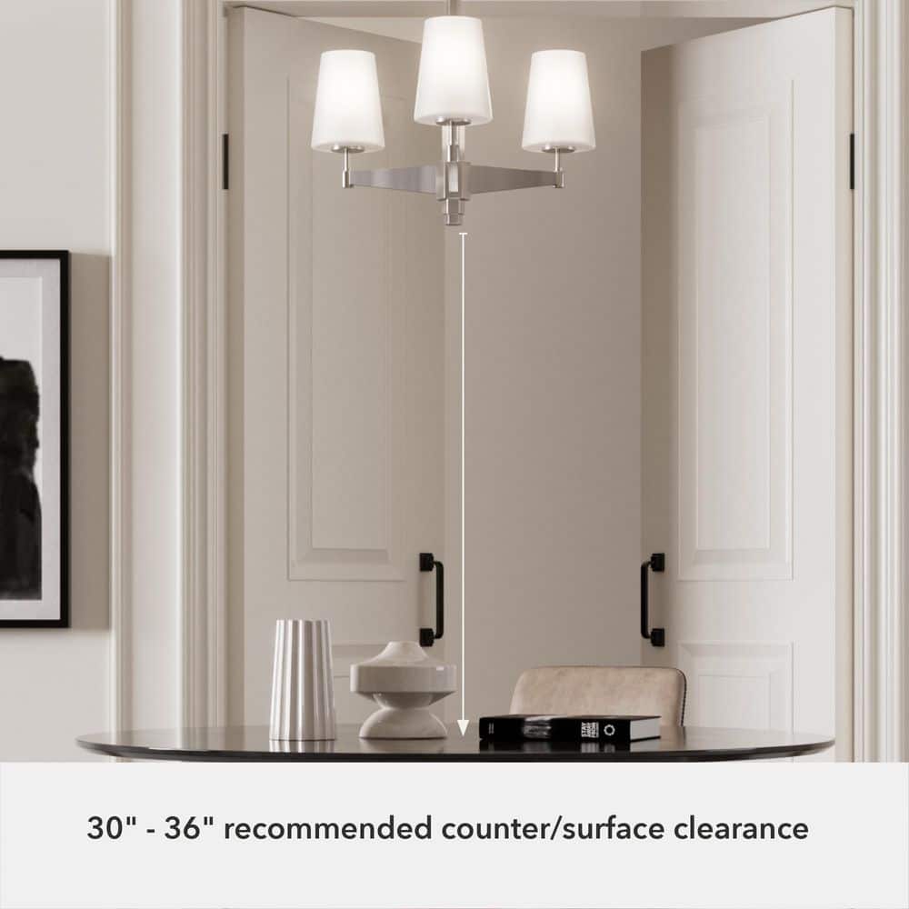 - Modern Design: Sleek brushed nickel finish with elegant cased white glass shades that complement contemporary decor.