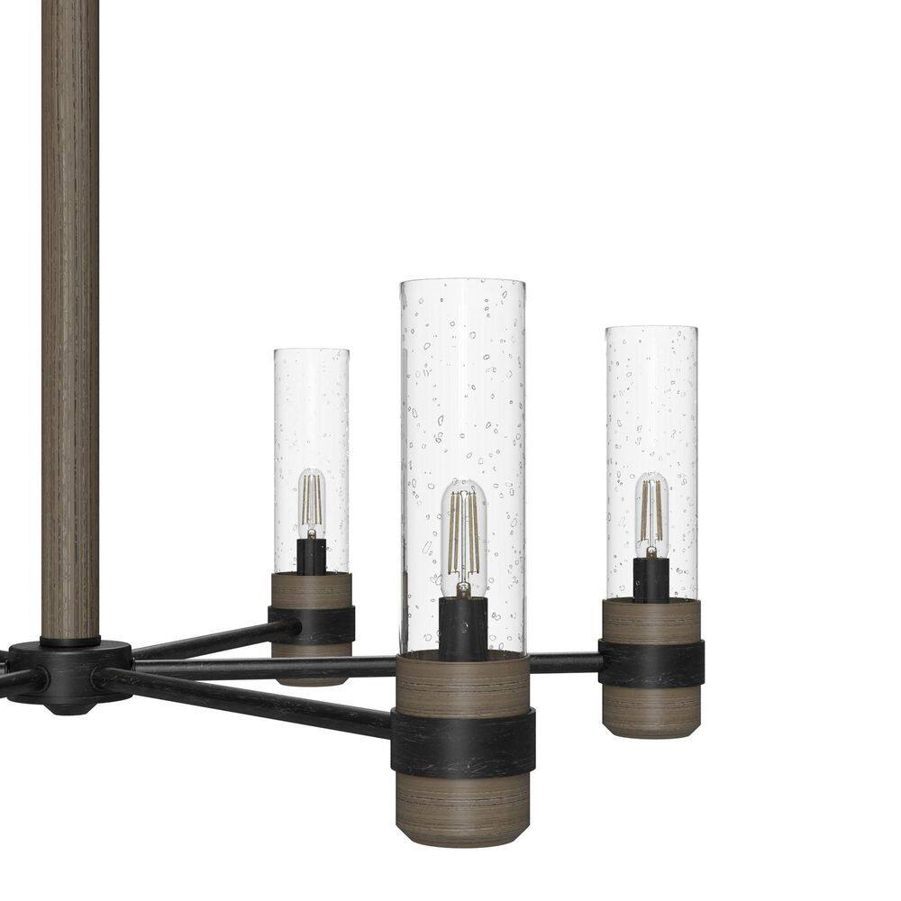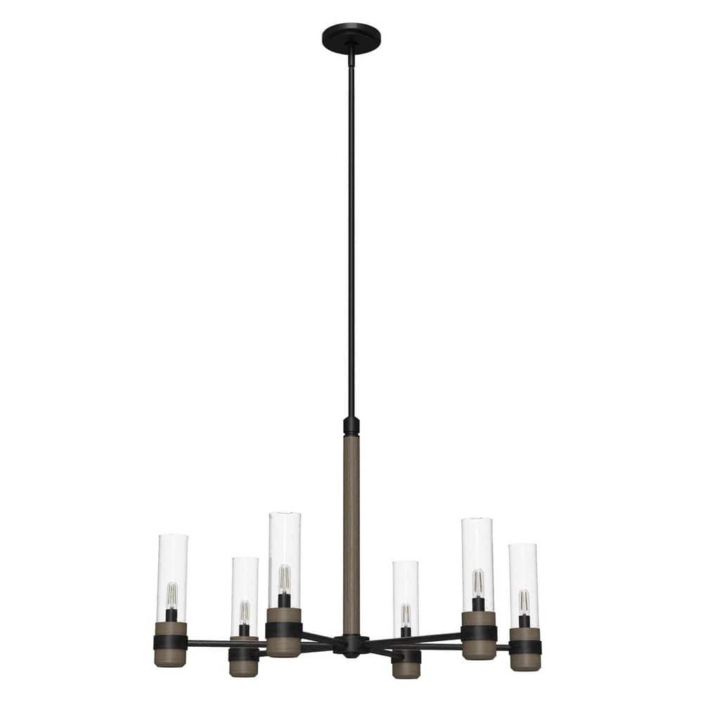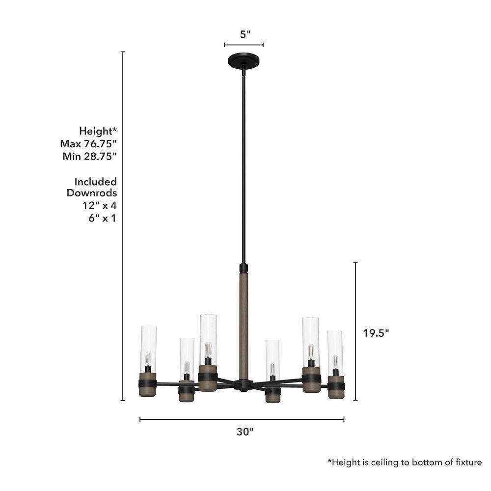Elevate any room with the timeless elegance of the Hunter River Mill 6-Light Chandelier. Combining rustic iron with sleek, clear seeded glass shades, this fixture exudes a modern mountain lodge charm. Perfect for illuminating kitchens, dining rooms, or foyers, its adjustable hanging length offers versatile style options.
