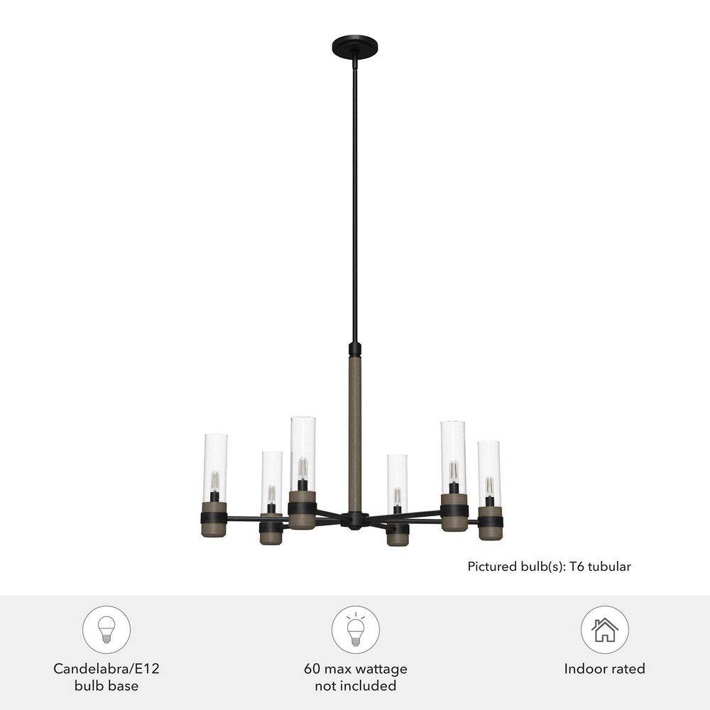 Hunter River Mill 6-Light Rustic Iron Candlestick Chandelier with Clear Seeded Glass Shades