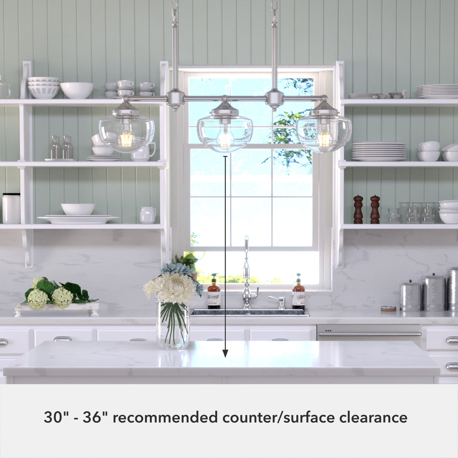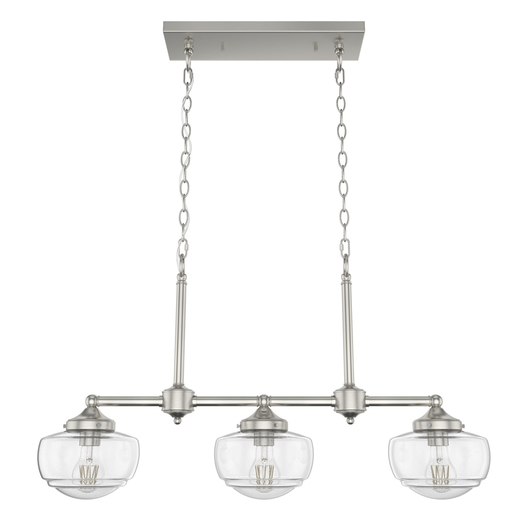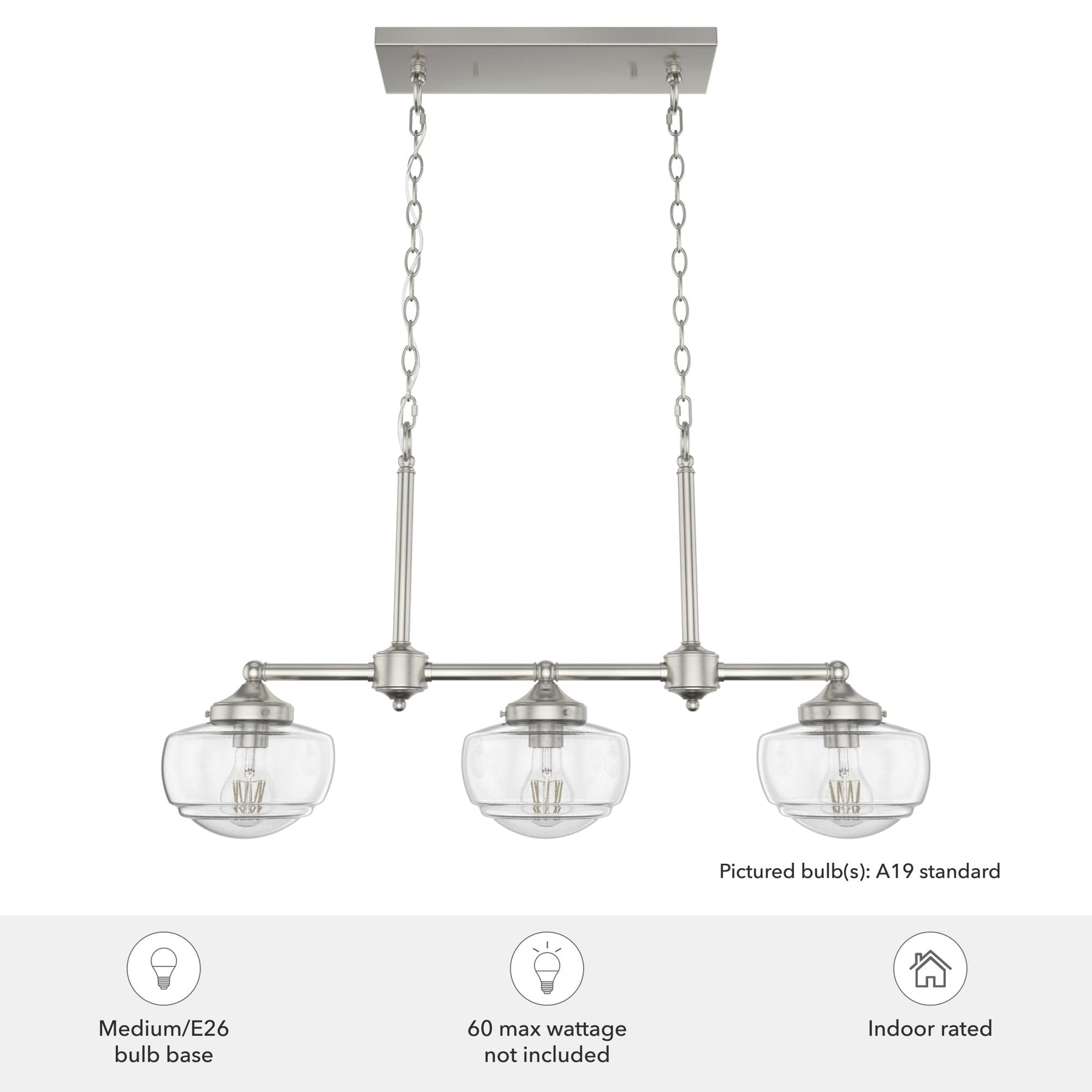 • Premium Design: Transitional style with brushed nickel finish and seeded glass for a sophisticated look.