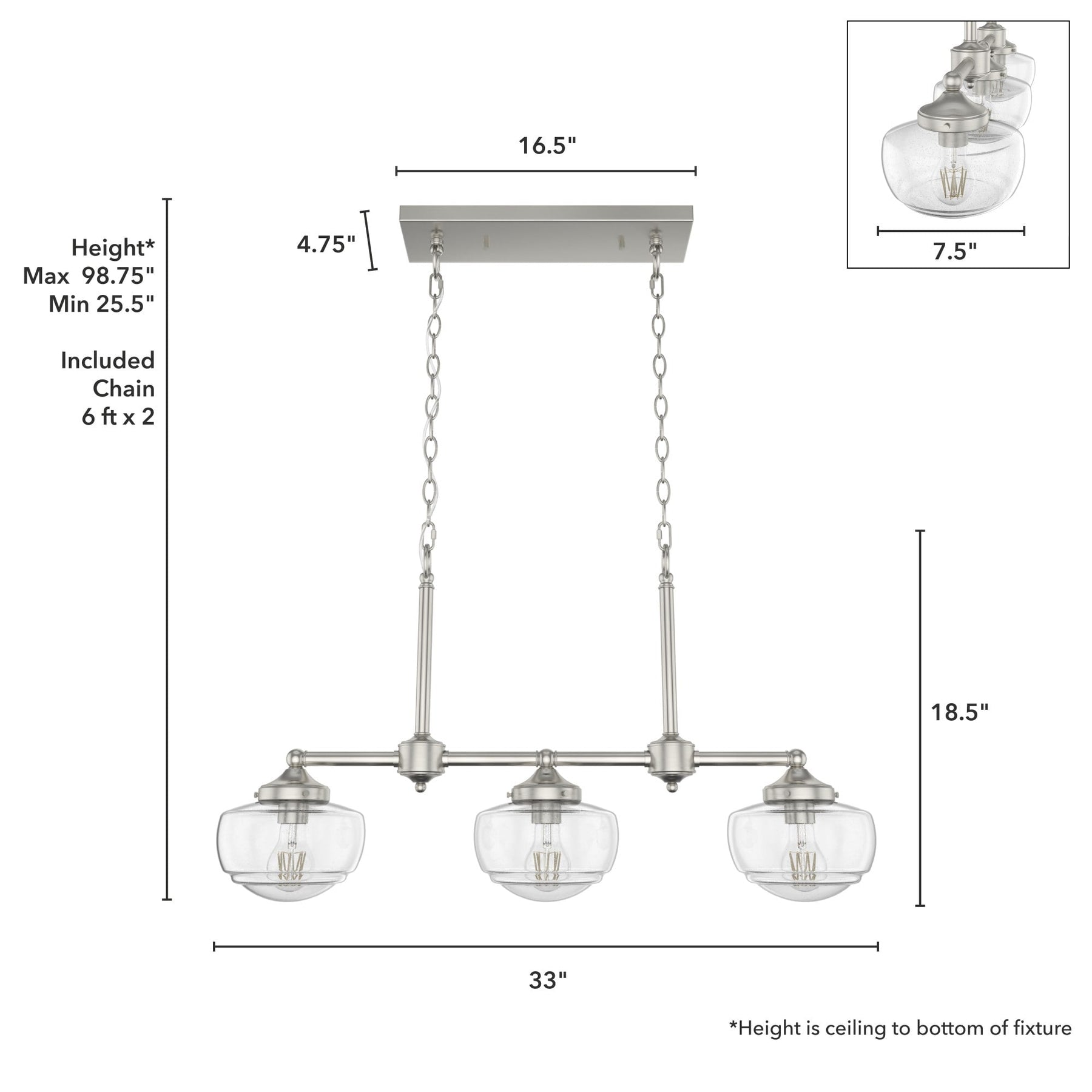 • Adjustable Hanging Length: 72-inch chain allows for height customization between 25.5 inches to 98.75 inches.