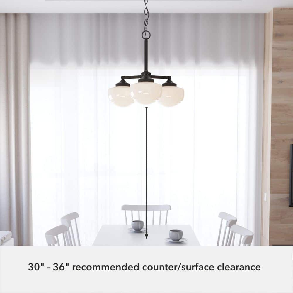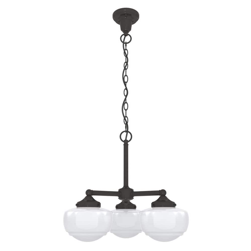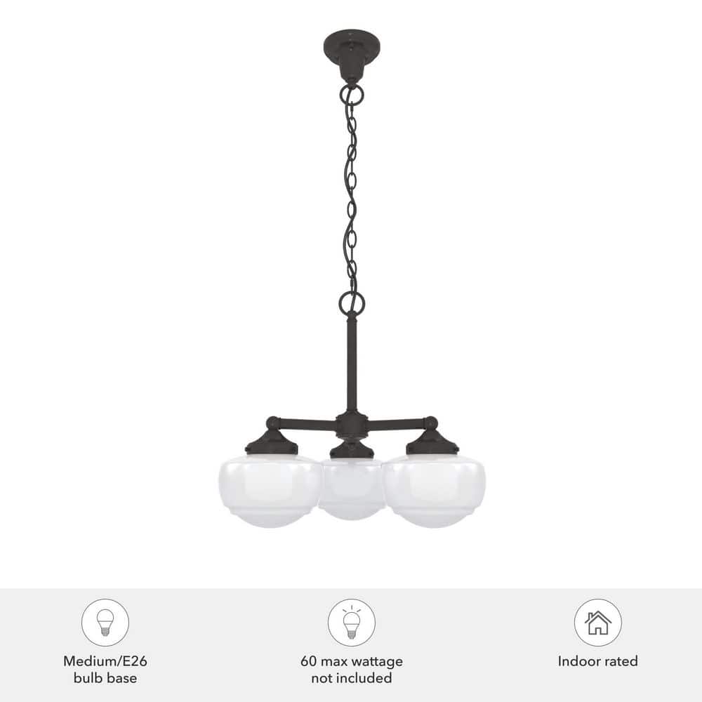 Hunter Saddle Creek 3-Light Noble Bronze Schoolhouse Chandelier with Cased White Glass Shades