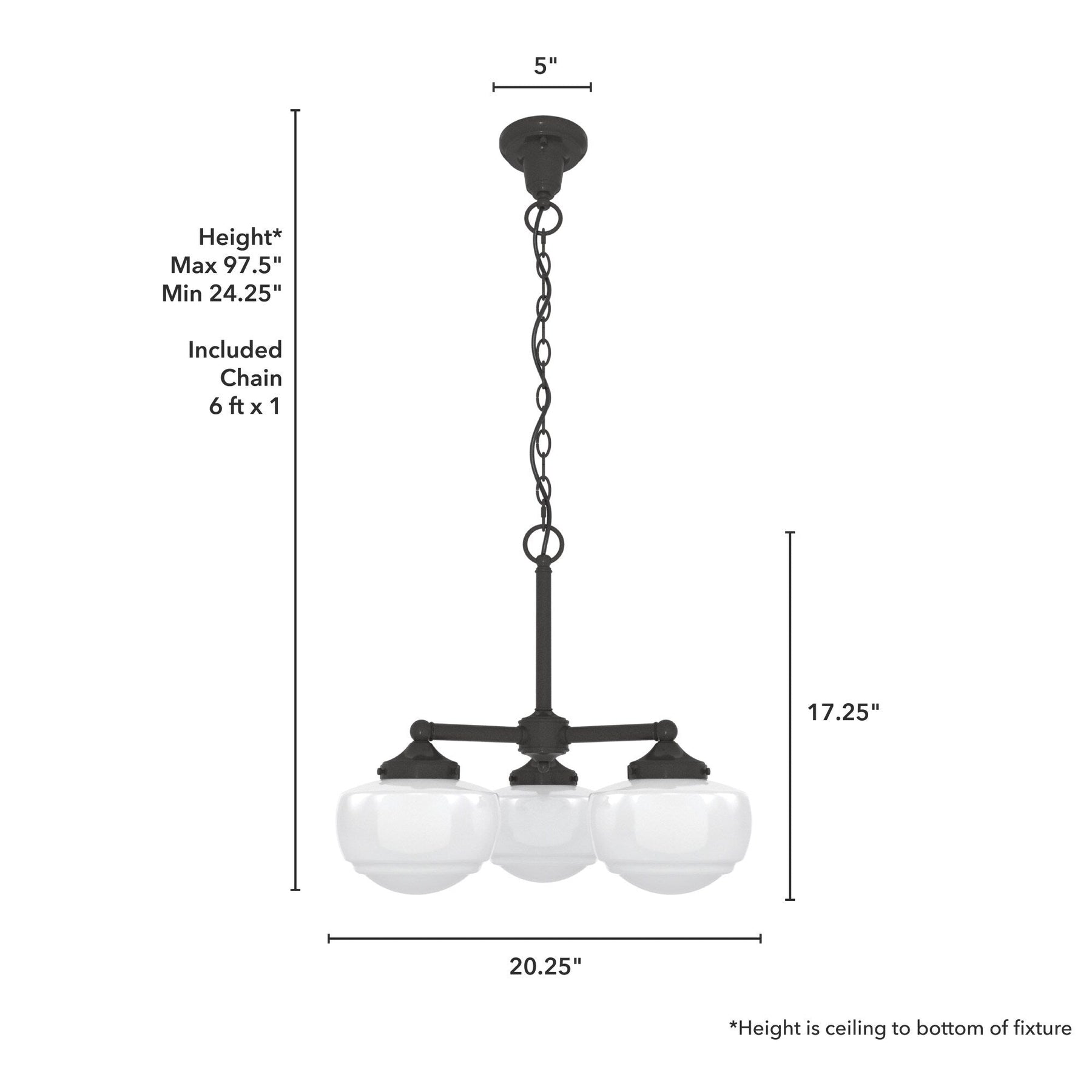 A: The chandelier features a 72-inch chain that can be adjusted for a hanging length between 24.25 inches and 97.5 inches.