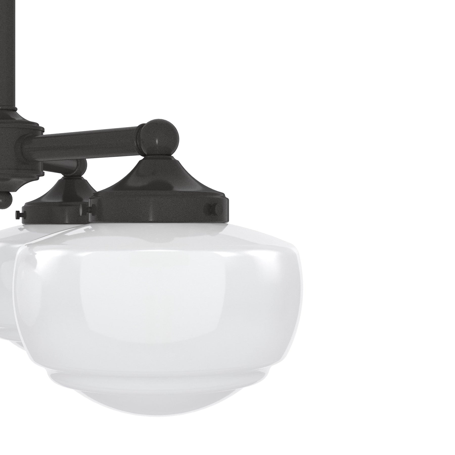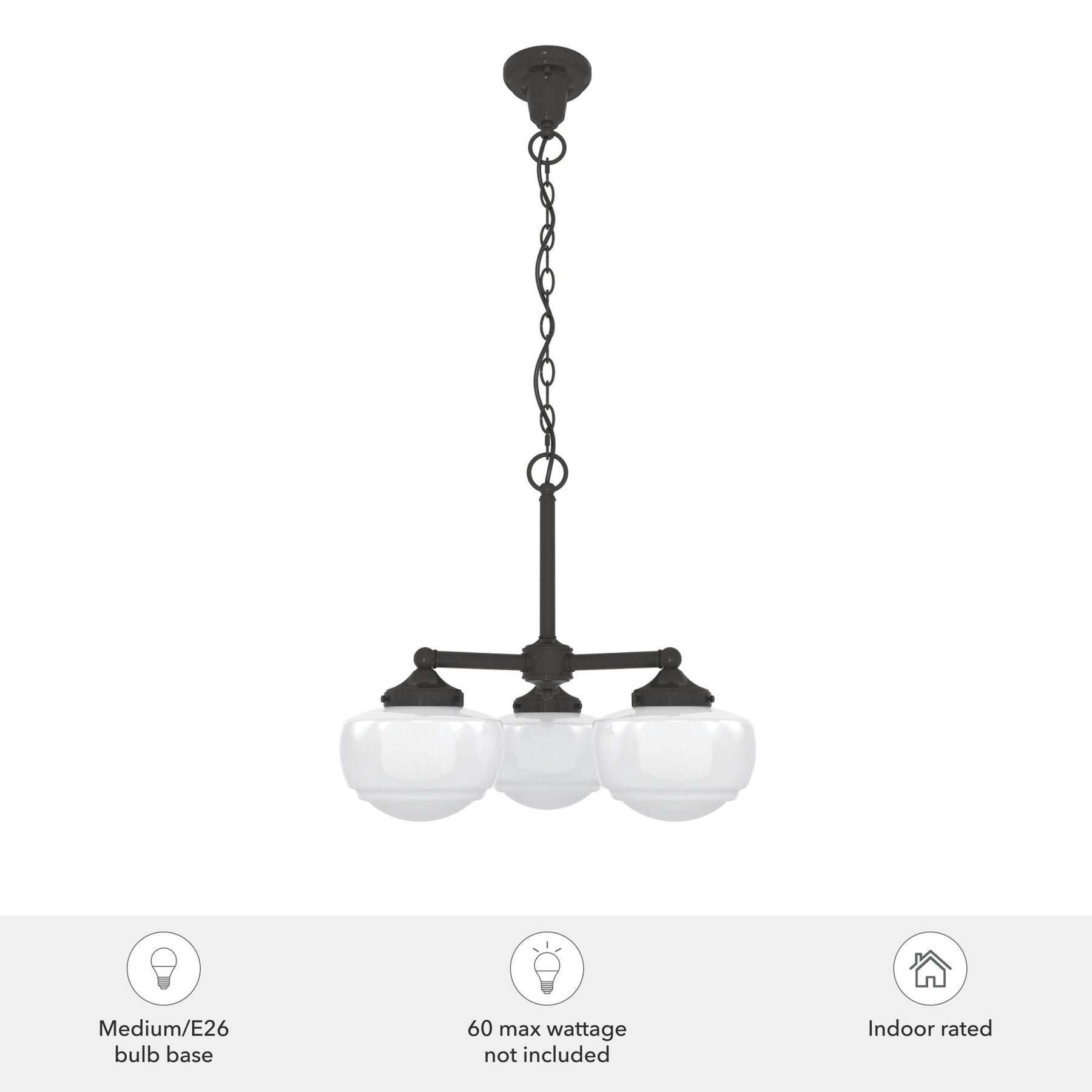 A: The chandelier uses three E26-base light bulbs, A19 recommended, each up to 60 watts maximum or the LED equivalent.