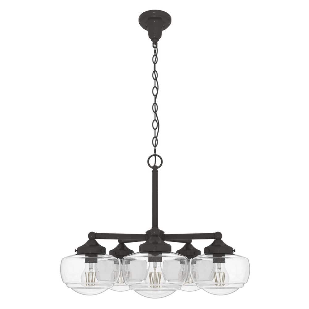 Hunter Saddle Creek 5-Light Noble Bronze Schoolhouse Chandelier with Clear Seeded Glass Shades