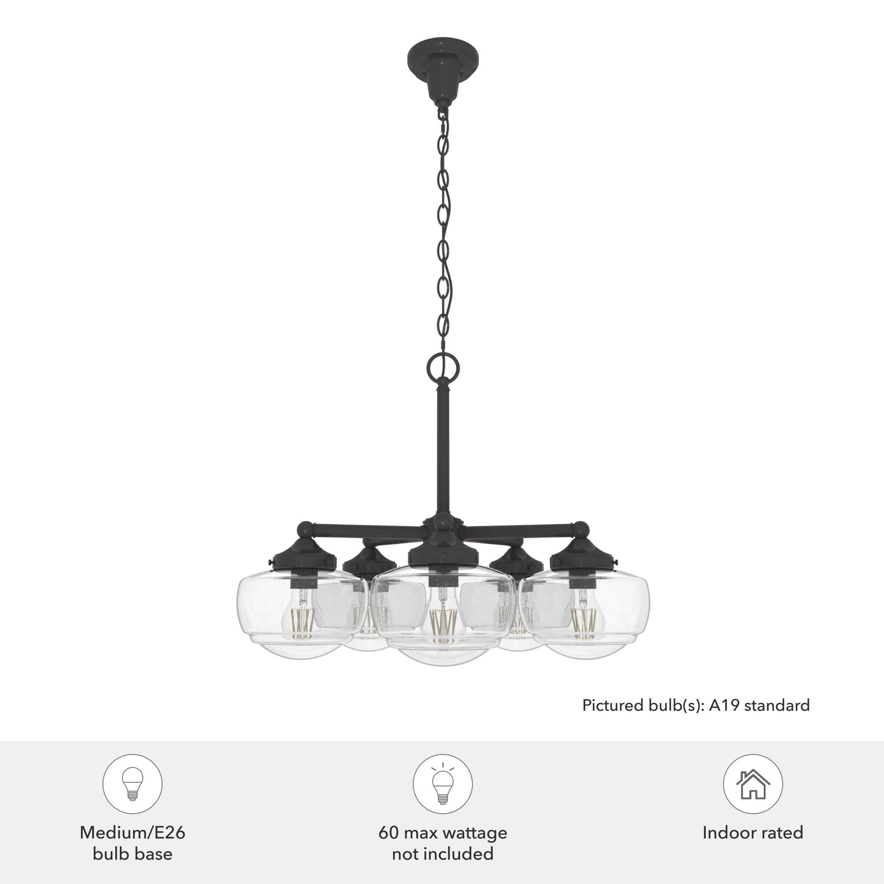 • LED Compatible: Uses five 60-watt max E26-base bulbs or LED equivalents (not included).
