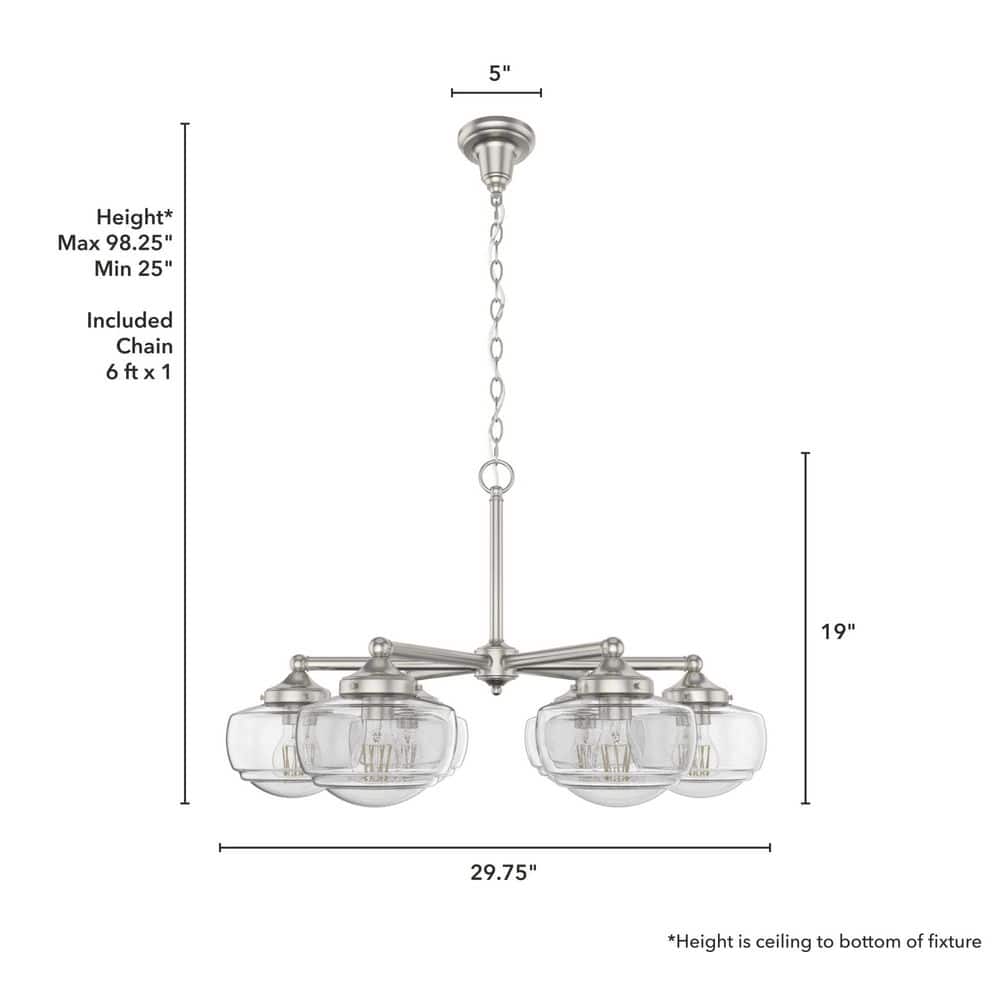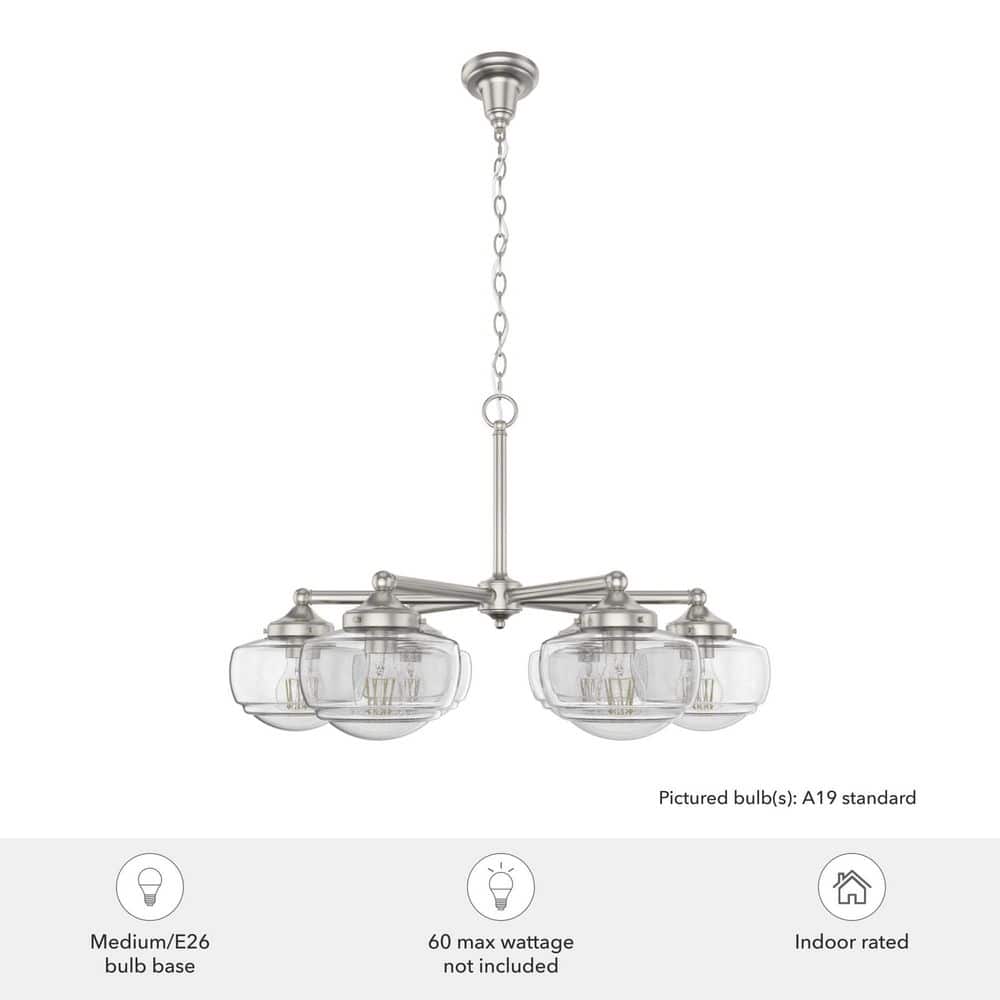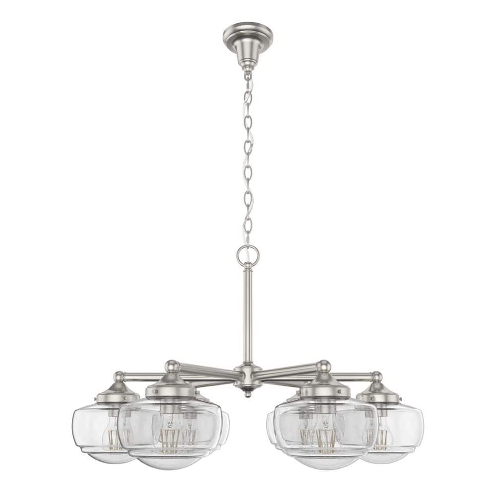 Hunter Saddle Creek 6-Light Brushed Nickel Schoolhouse Chandelier with Clear Seeded Glass Shades