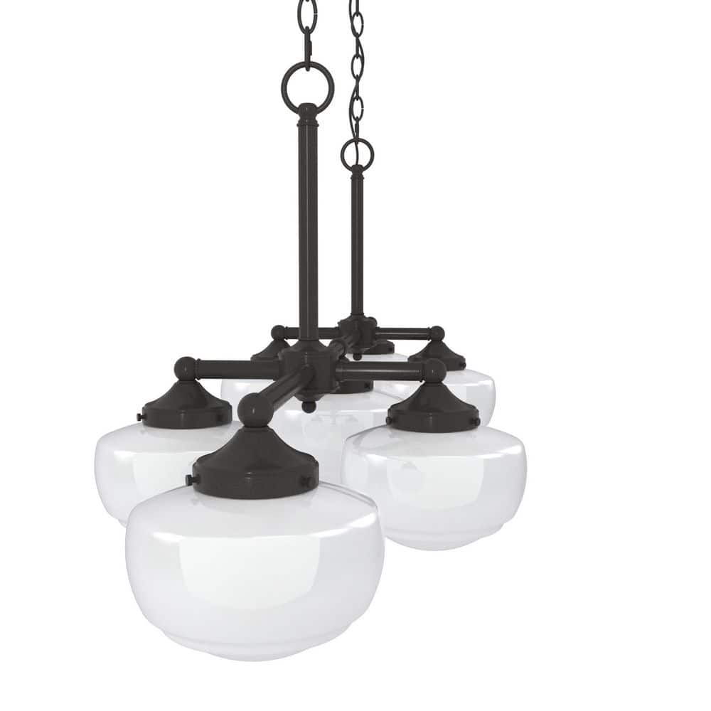 Hunter Saddle Creek 7-Light Noble Bronze Schoolhouse Chandelier with Cased White Glass Shades