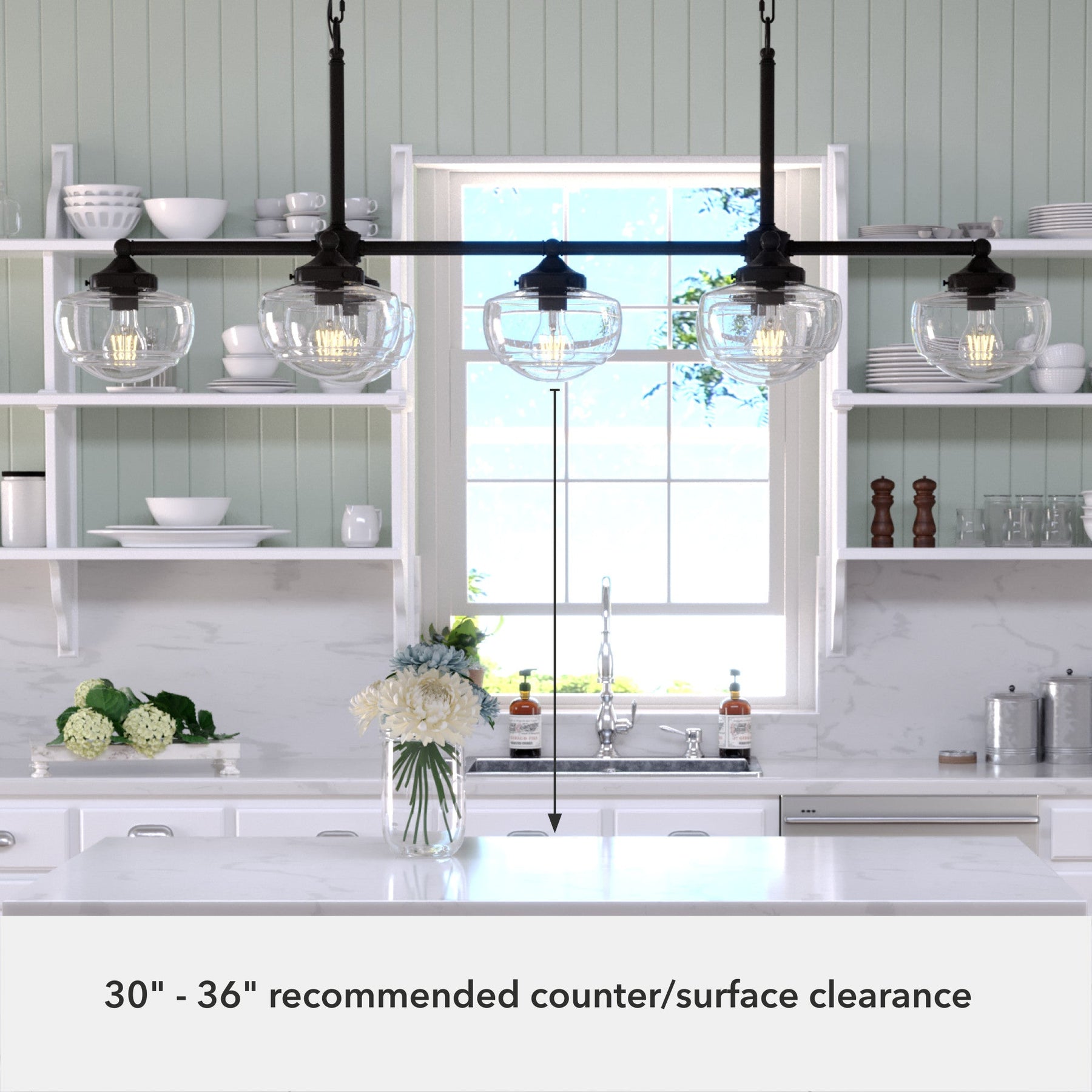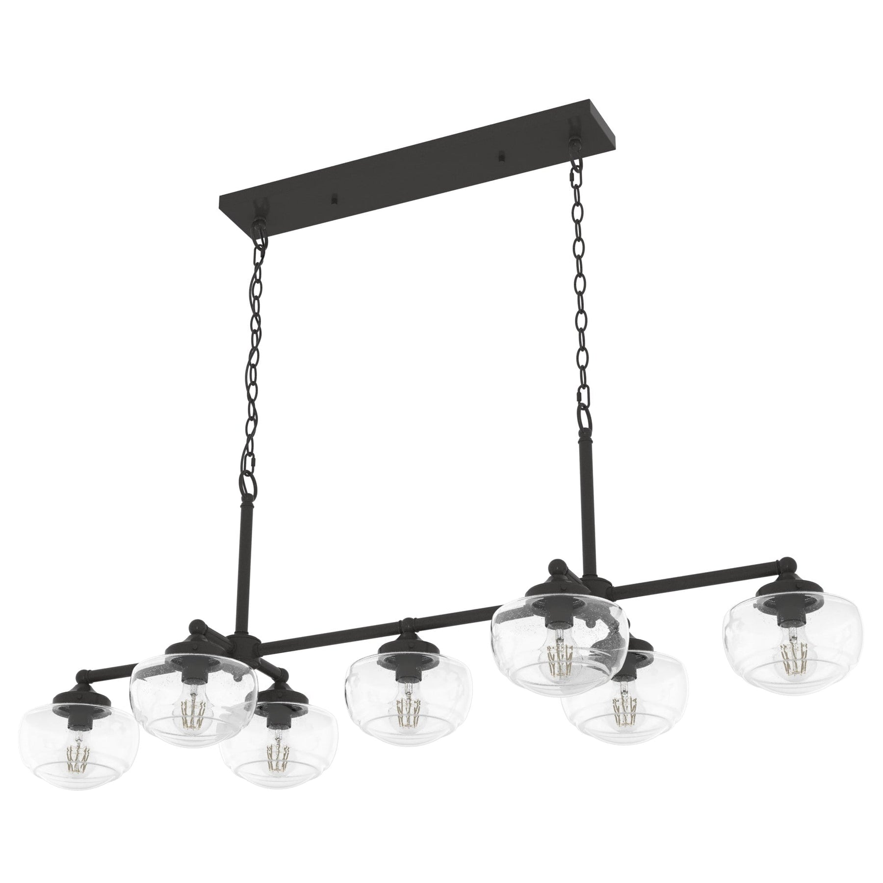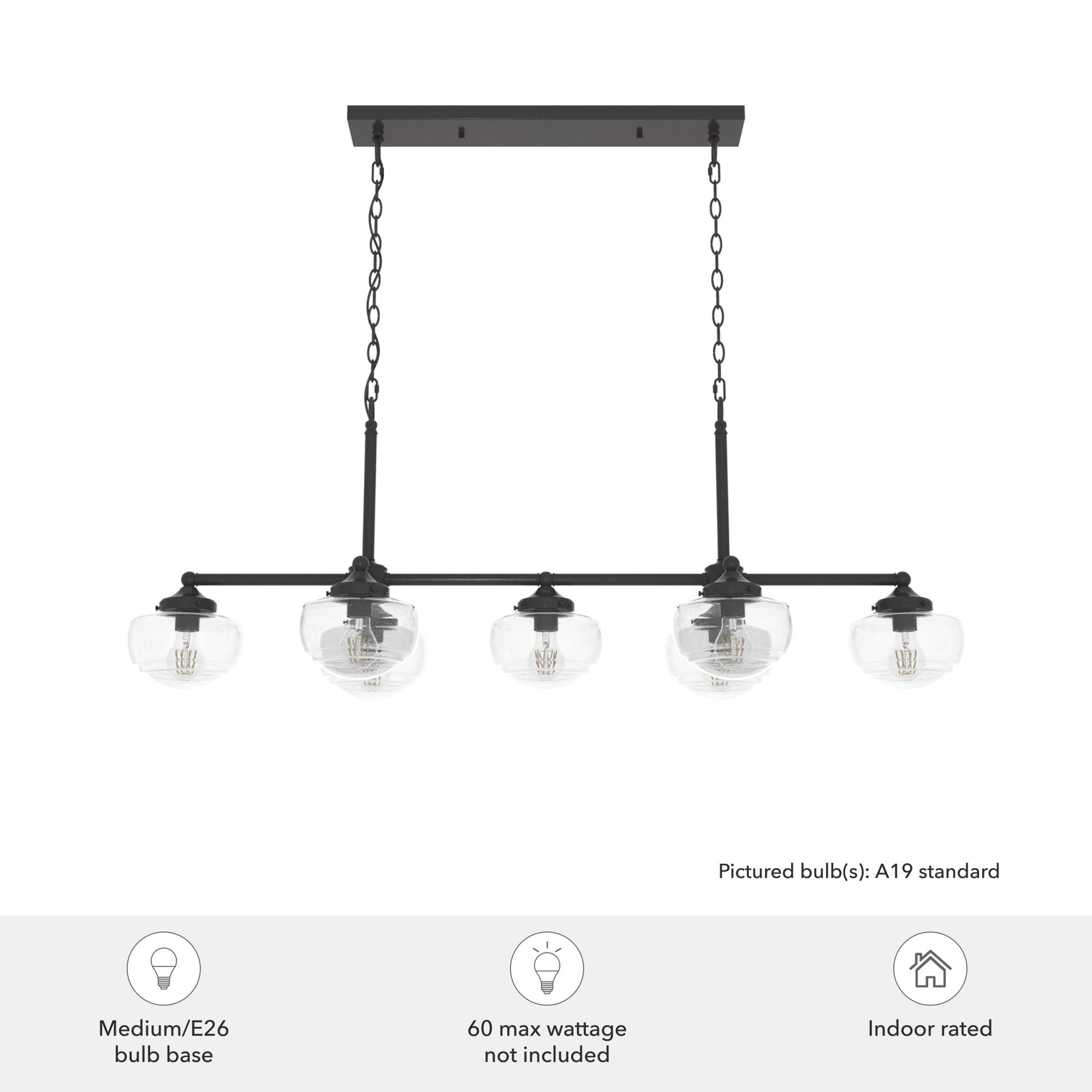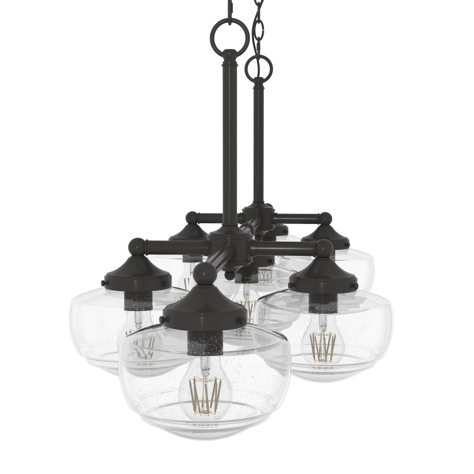 • Premium Design: A transitional chandelier with a noble bronze finish and clear seeded glass shading.