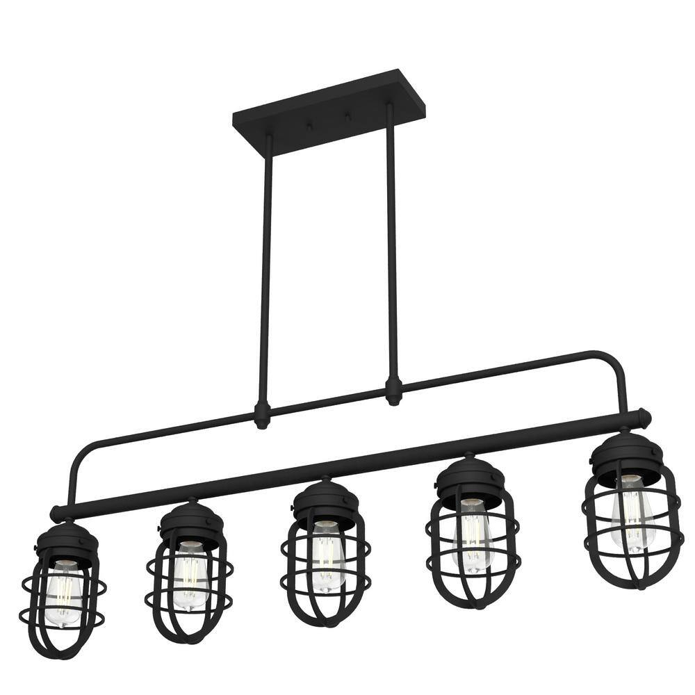 Illuminate your space with the Hunter Starklake 5-Light Linear Chandelier, a perfect blend of modern industrial and farmhouse aesthetics. Its natural iron finish and unique caged design make it a standout piece in kitchens and dining rooms. Pair it with Edison LED bulbs for a stunning effect that complements the Starklake ceiling fan collection.