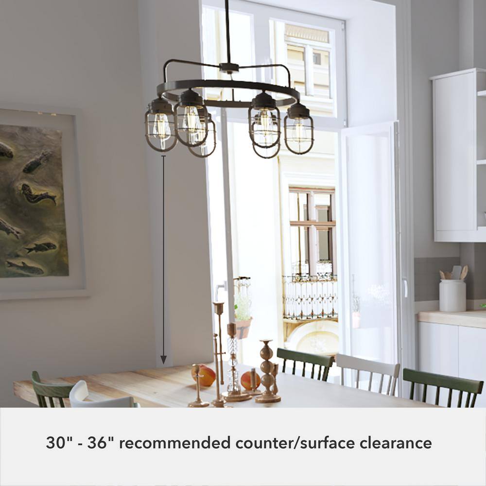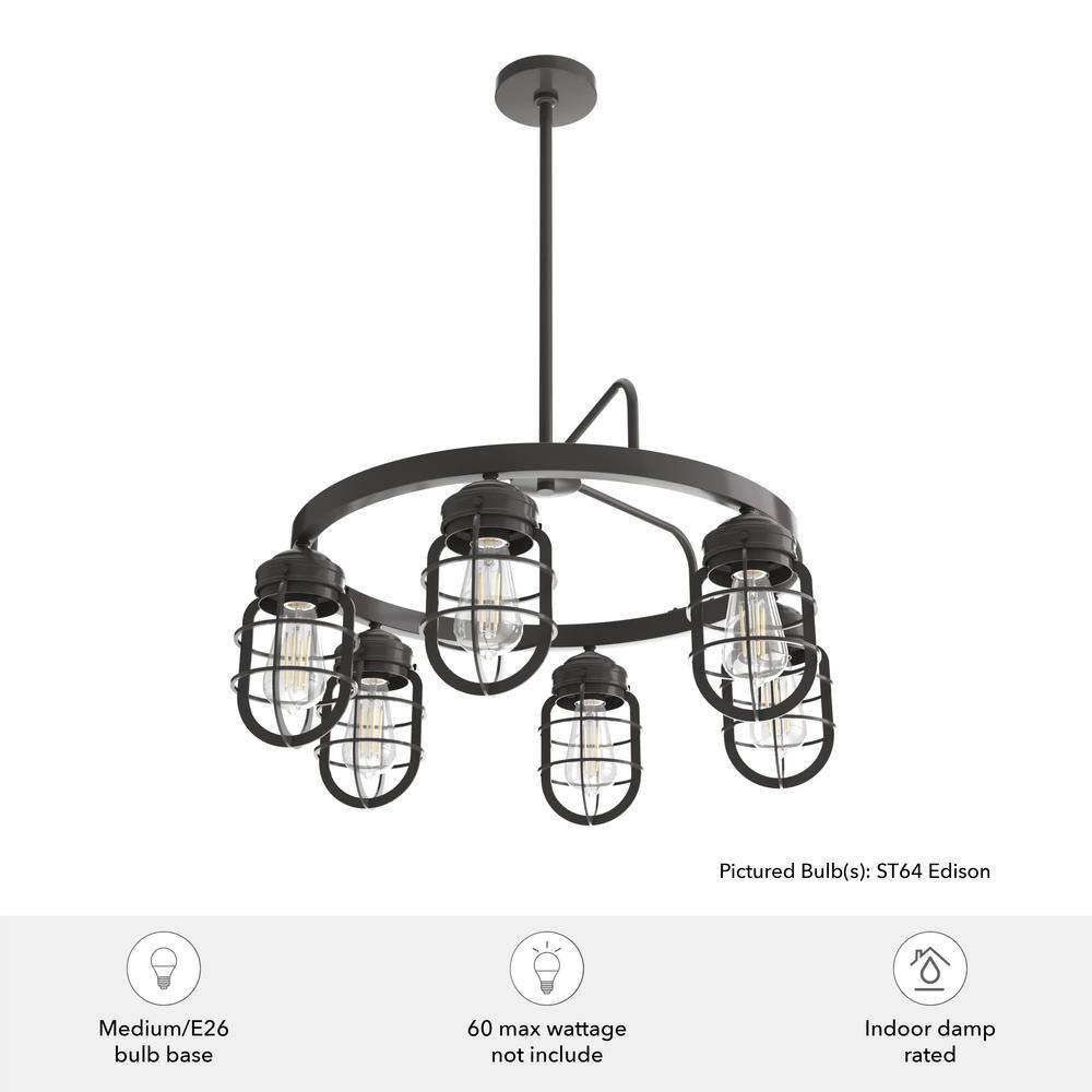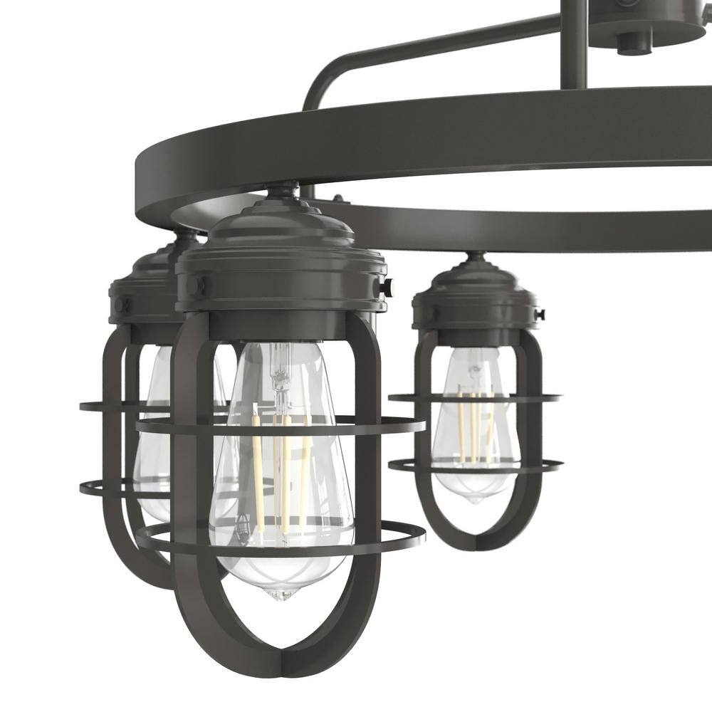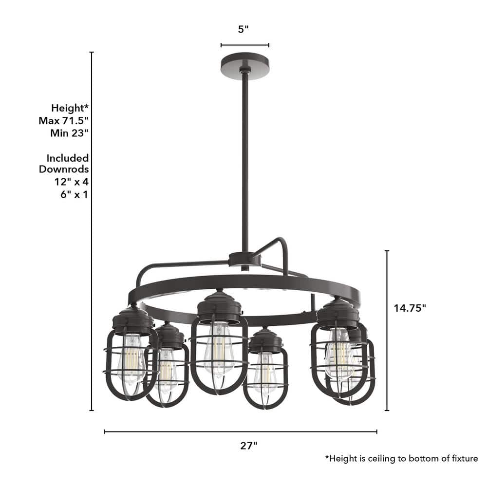 Illuminate your space with the Hunter Starklake 6-Light Chandelier, featuring a noble bronze finish and industrial-inspired cage design. This piece combines style and function, perfect for modern farmhouse and industrial interiors, enriching dining rooms or kitchen islands with warm ambient light.