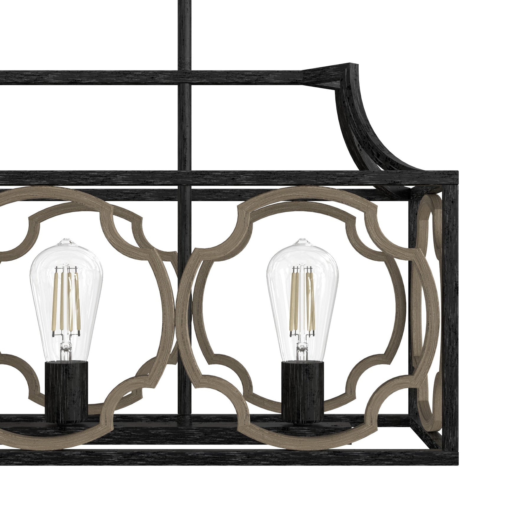 Unleash the refined charm of the Stone Creek chandelier to transform your interiors into a captivating haven. Its matte black finish juxtaposed with rustic French oak details embodies a delightful aesthetic of rustic elegance. Envision this radiant piece above your dining table or as a statement in your living room, where its warm glow will envelop your gatherings with timeless warmth. This chandelier is indispensable for those seeking a harmonious blend of farmhouse allure and modern sophistication to create the essence of luxurious living.