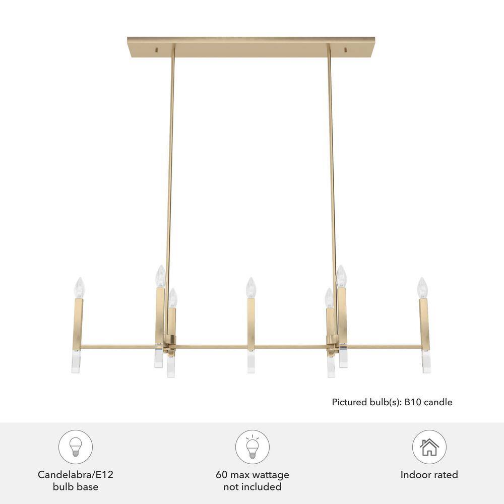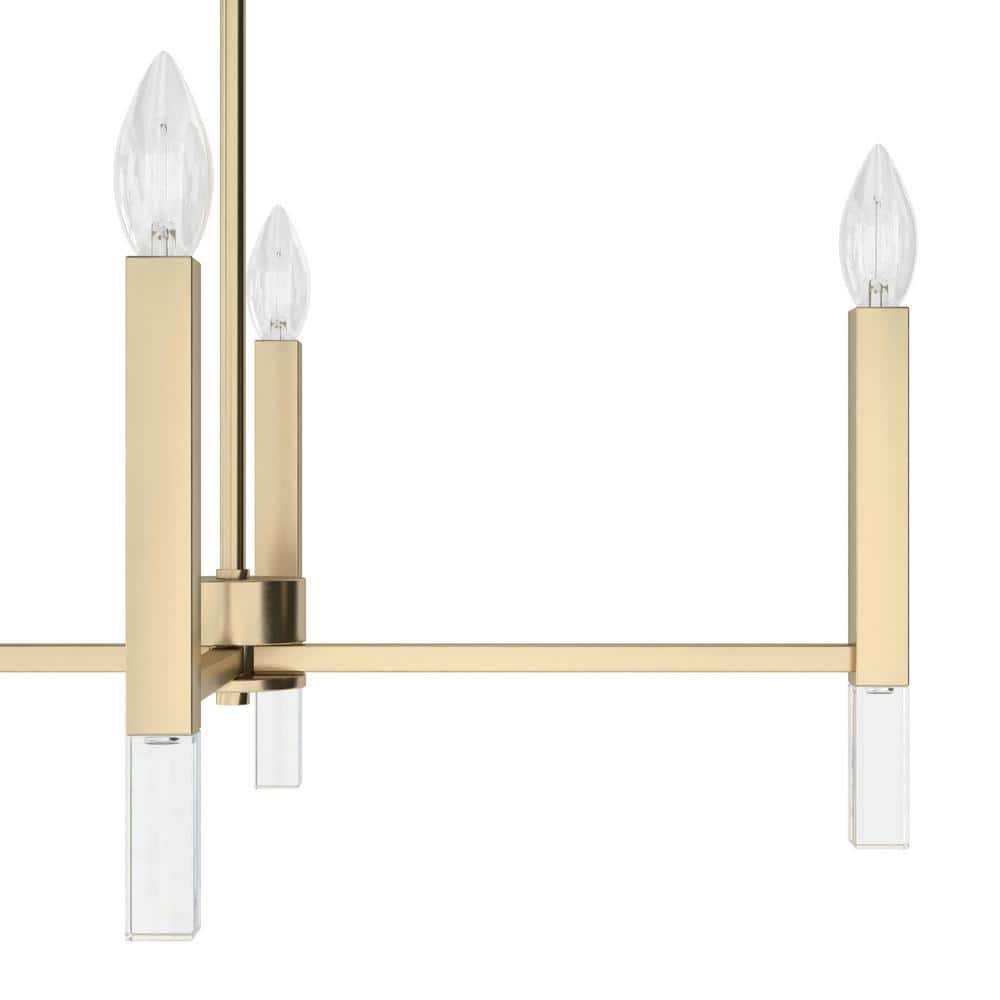 The Hunter Sunjai 7-Light Alturas Gold Candlestick Chandelier is a luxurious lighting solution that blends modern design with a touch of glamour. Its geometric adornments add sparkle to its clean-lined metal candles, making it a perfect centerpiece for kitchens and dining areas. Designed with versatility and style, it's a stunning addition to any home decor.
