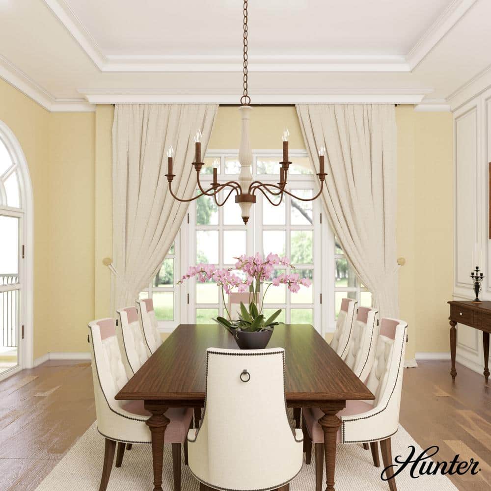 Hunter Teren 6 Light Distressed White Candlestick Chandelier Dining Room Light