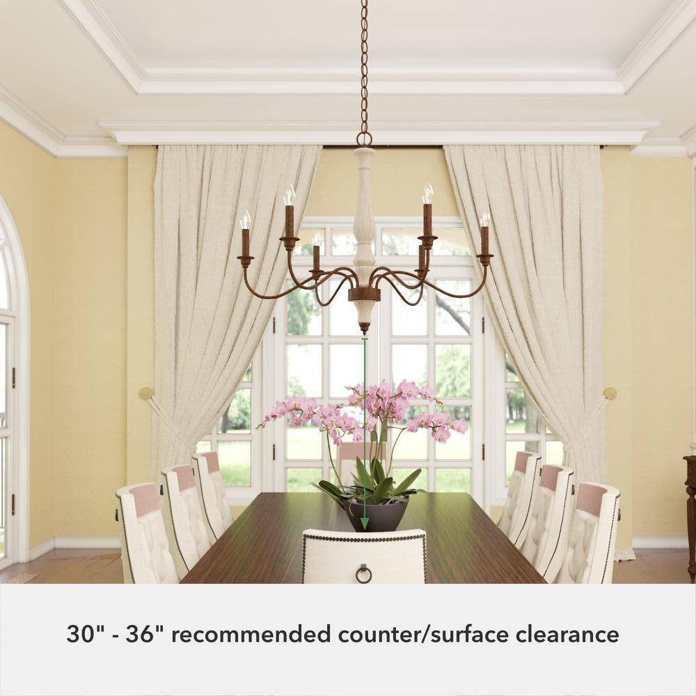 Transform your space with the Teren 6-Light Chandelier, which marries rustic charm with refined elegance. Its distressed white finish and timeless form bring a cozy yet sophisticated feel to any kitchen, dining room, or entryway.