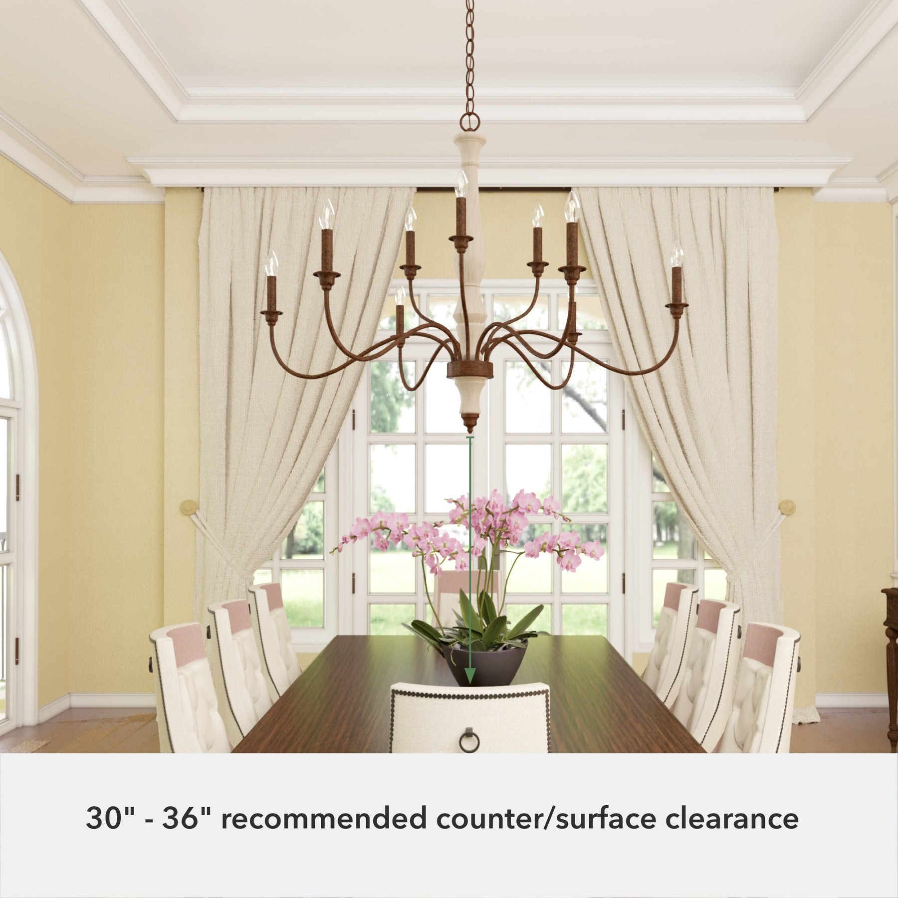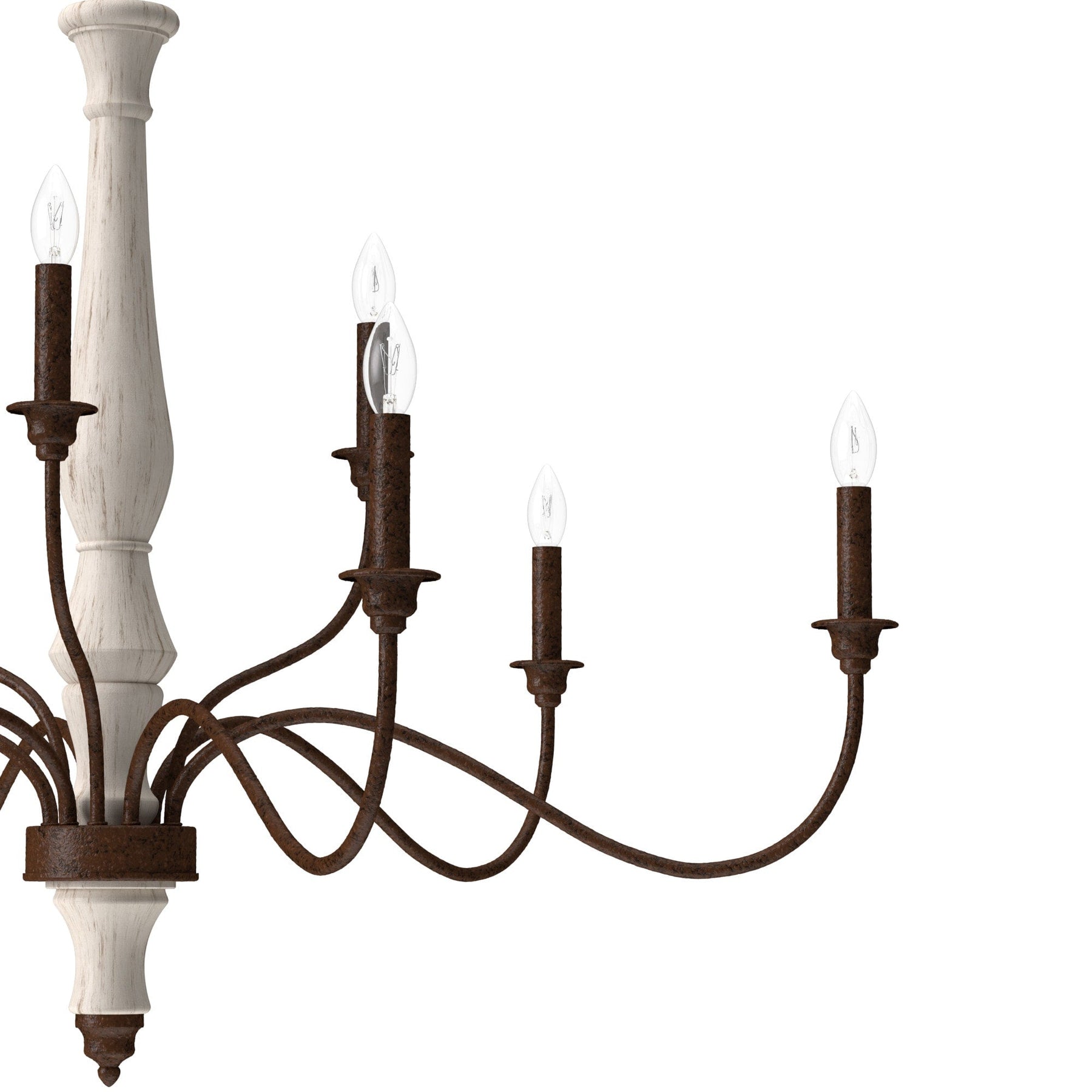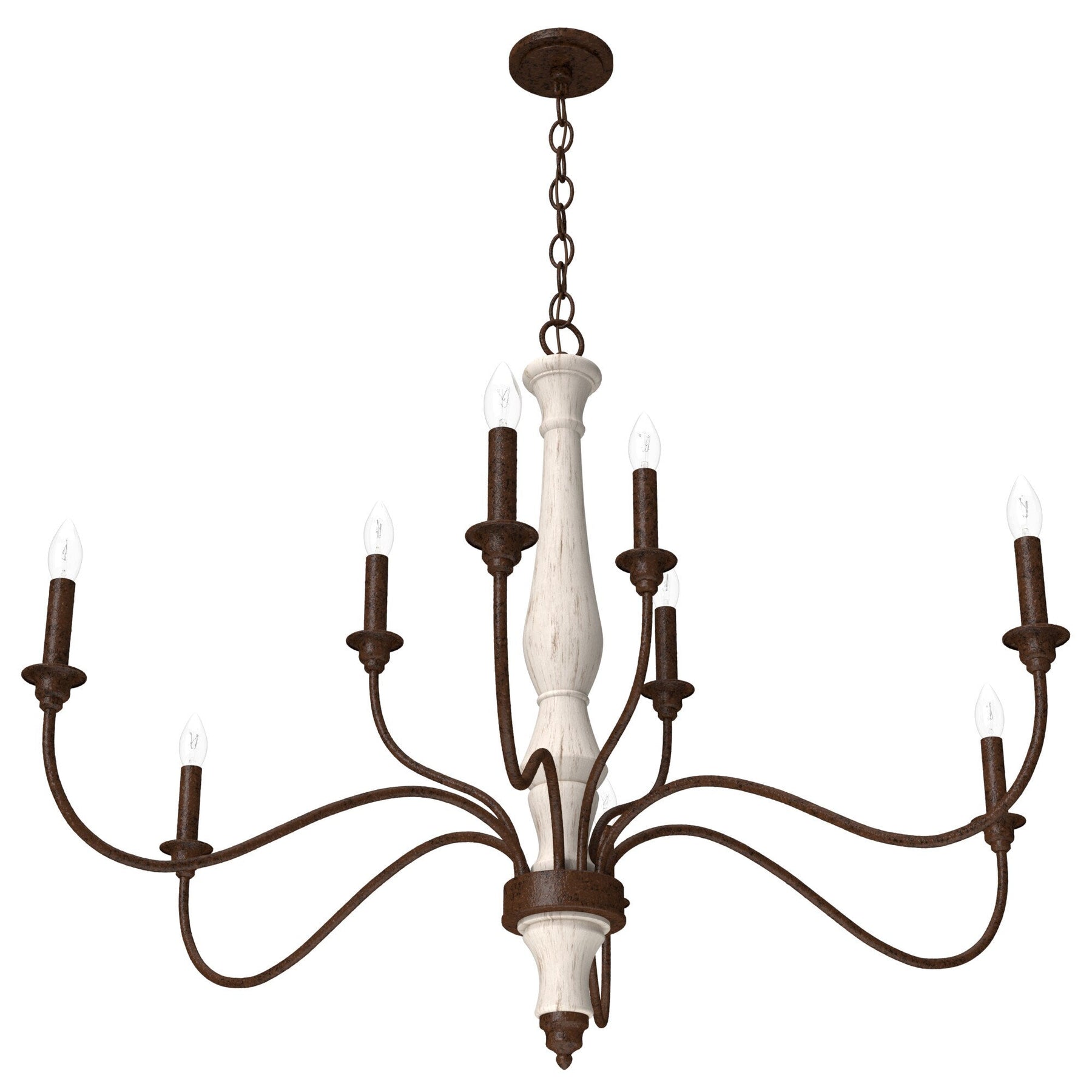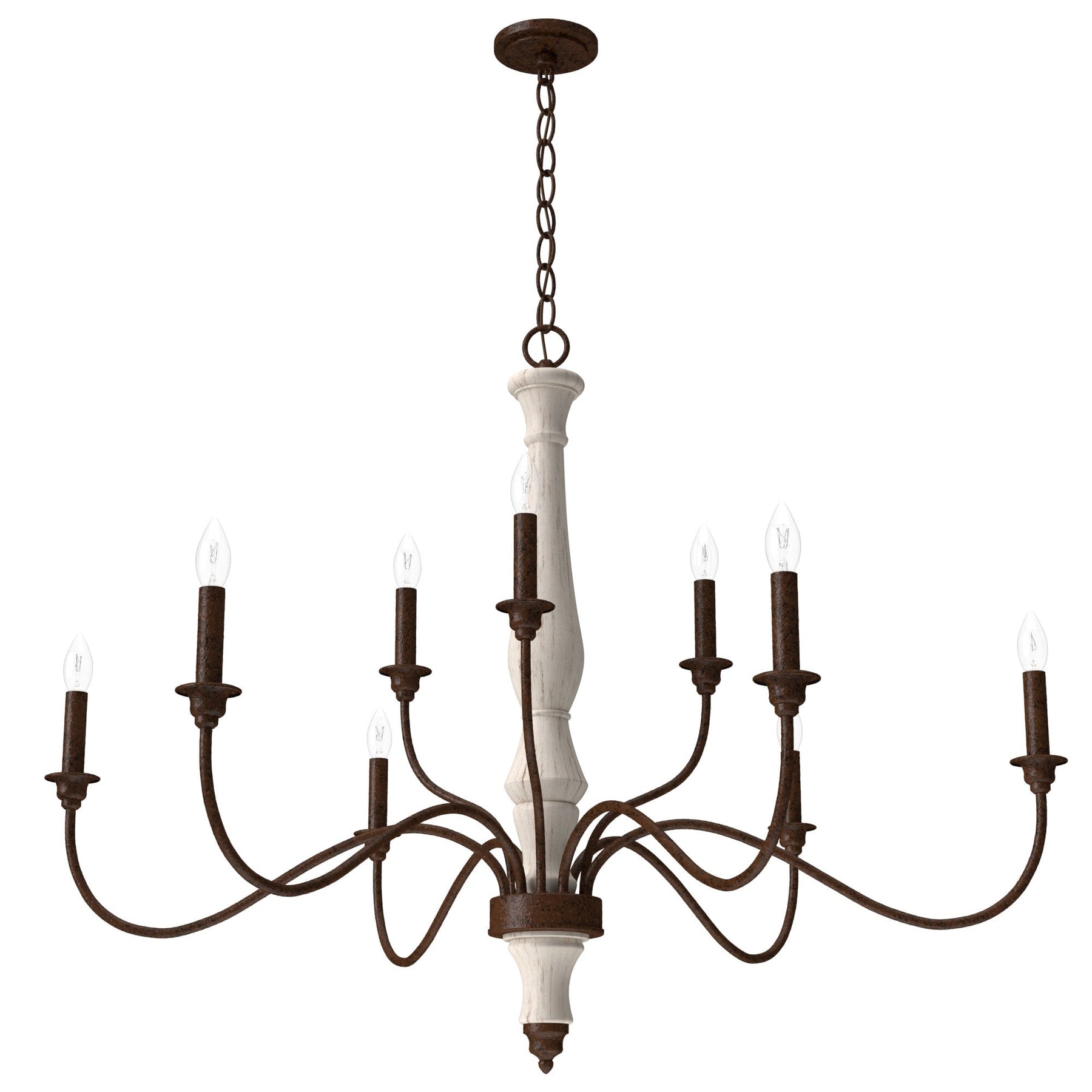 The Teren 9-Light Chandelier weaves sophistication and warmth, creating an inviting aura in any room it adorns. Its distressed white finish and bare bulb design emote a sense of rustic sophistication, reminiscent of tranquil French country retreats. Use the chandelier as a centerpiece above a dining table or as an enchanting focal point in a living room, where its layered lighting enlivens the space with understated grandeur. It's more than a light fixture—it’s the essence of cultivated luxury.