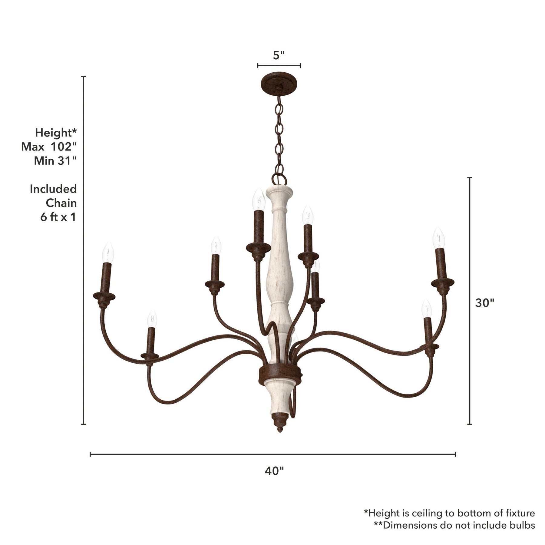 - Adjustable Hanging: Includes a 72-inch chain adjustable to ceiling heights up to 102 inches; sloped ceiling compatible.