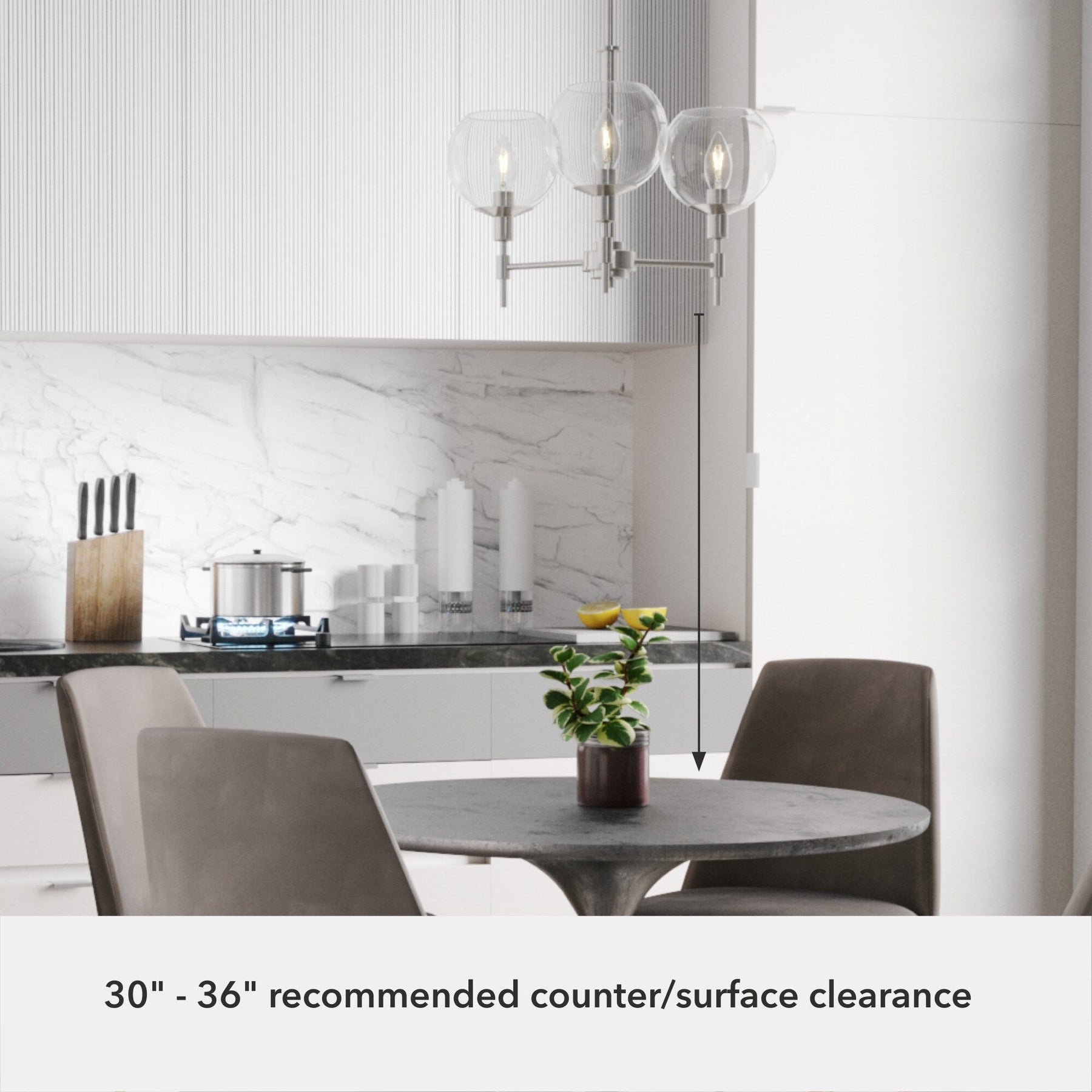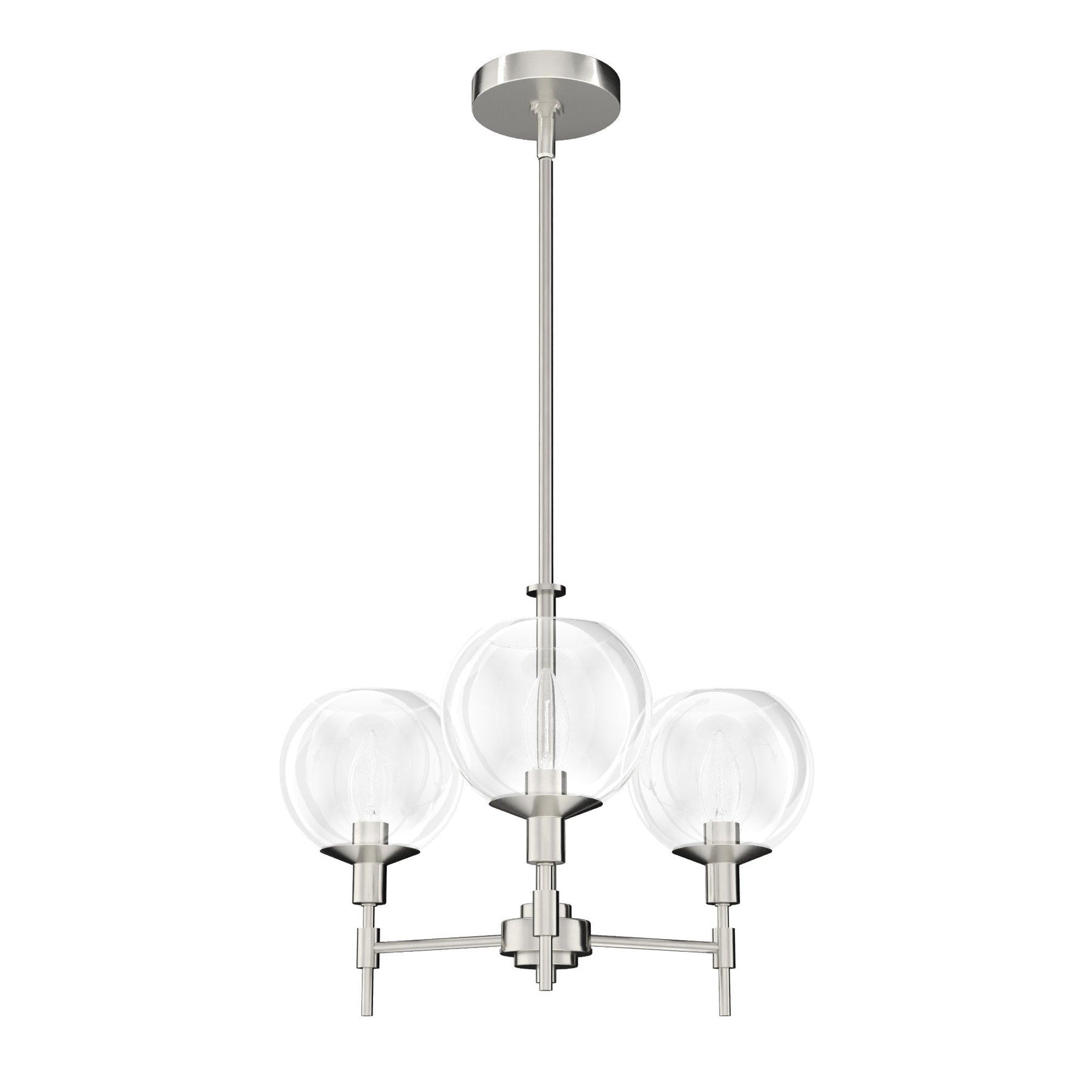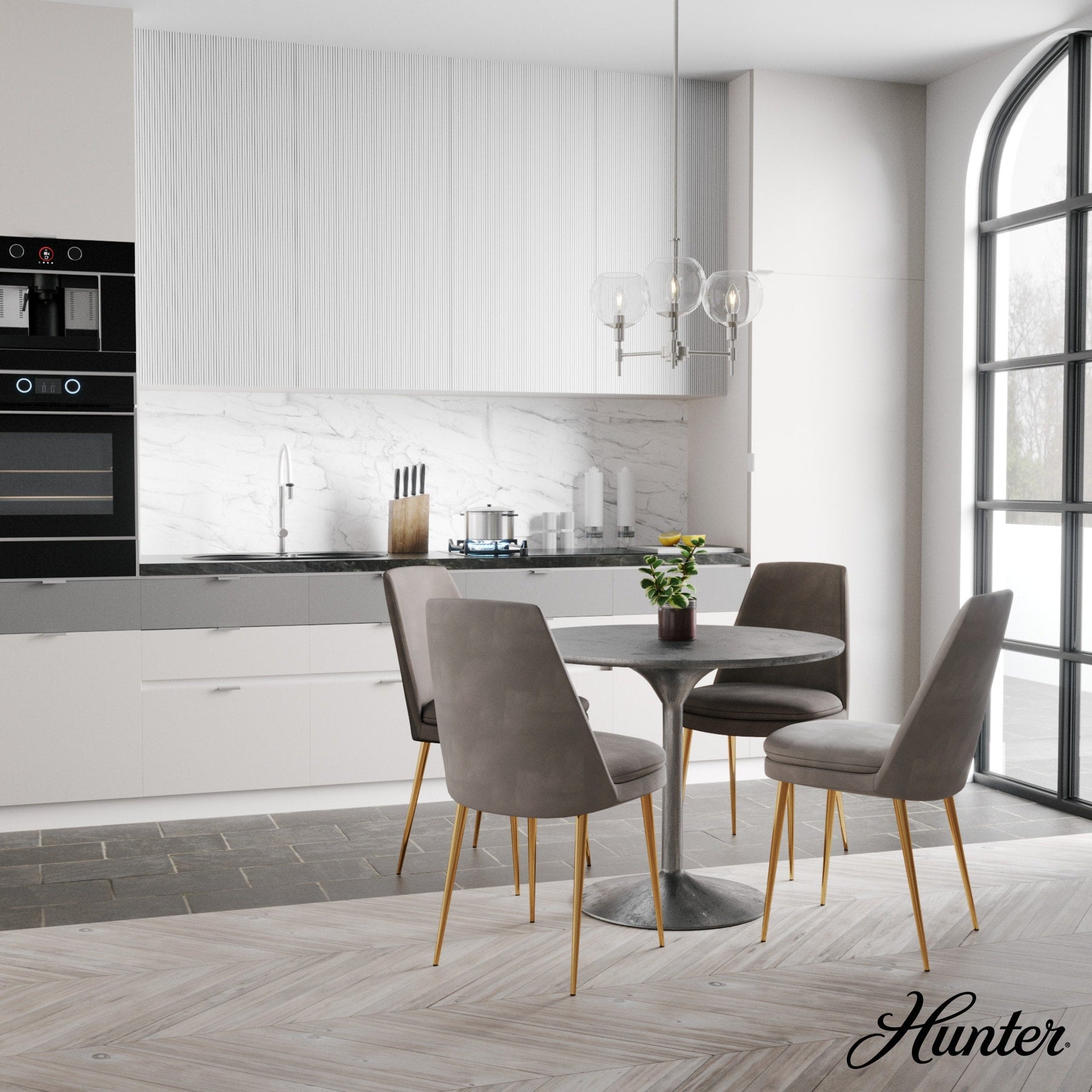 Illuminate your space with the Hunter Xidane 3-Light Crystal Chandelier, a blend of mid-century elegance with modern technology. Featuring a brushed nickel finish and luxurious crystal design, this chandelier is perfect for kitchens, living rooms, and more.