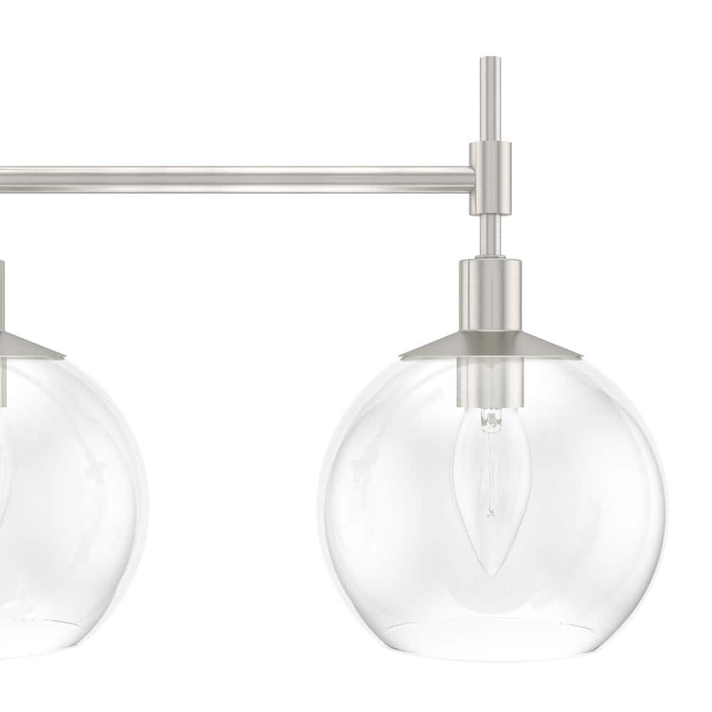 • Design: Mid-century modern brushed nickel with clear glass shades for a sleek aesthetic.