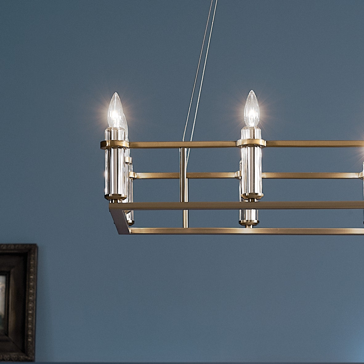 The Rosalind chandelier is a celestial beauty that transforms any room into a canvas of light and luxury. Its graceful linear silhouette, accentuated by glistening crystal sleeves, creates a centerpiece that embodies sophistication and allure. Nestled above a grand dining table or illuminating a luxurious living room, this chandelier invites whispers of admiration and enhances the ambiance with its warm, inviting glow. Truly, its presence is an embodiment of architectural elegance, seamlessly merging grandeur with a contemporary charm.