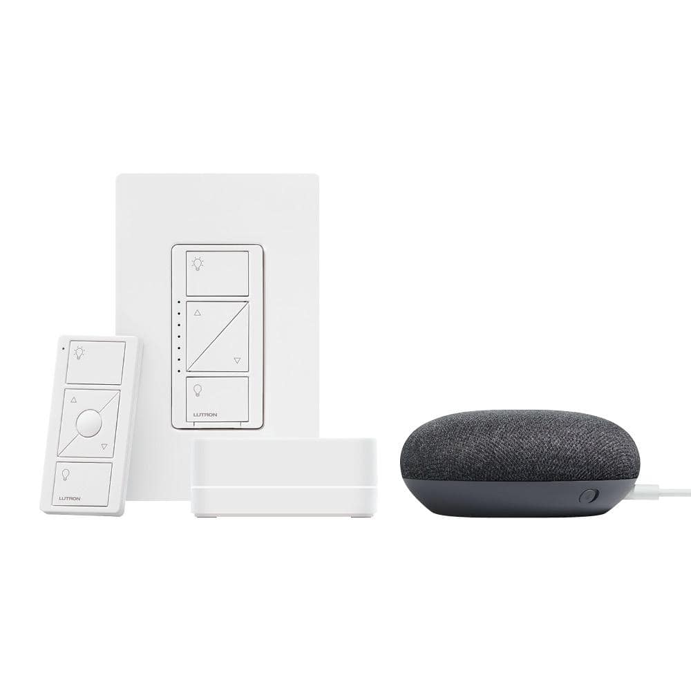 Lutron Caseta Smart Lighting Dimmer Switch Starter Kit w Google Home Mini Charcoal (CASETA1W-GMCHCL)