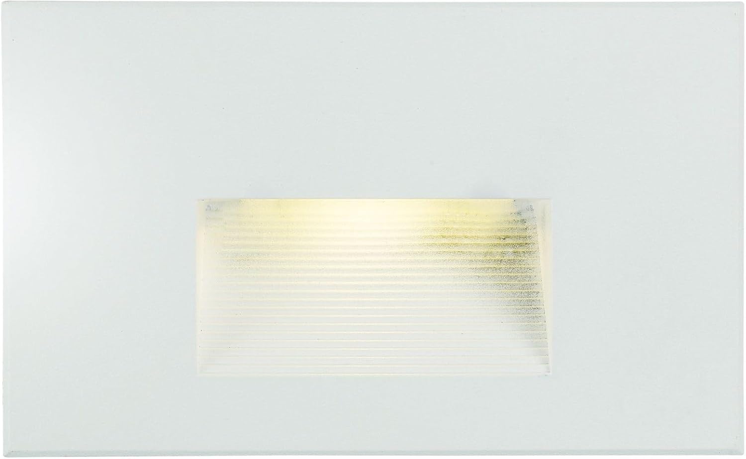 Hardwired, line-voltage LED step and pathway light designed to fit a standard single-gang box. Durable metal construction with a white finish delivers warm 3000K illumination in a horizontal wide beam for safer stairs, walkways, and entries.
