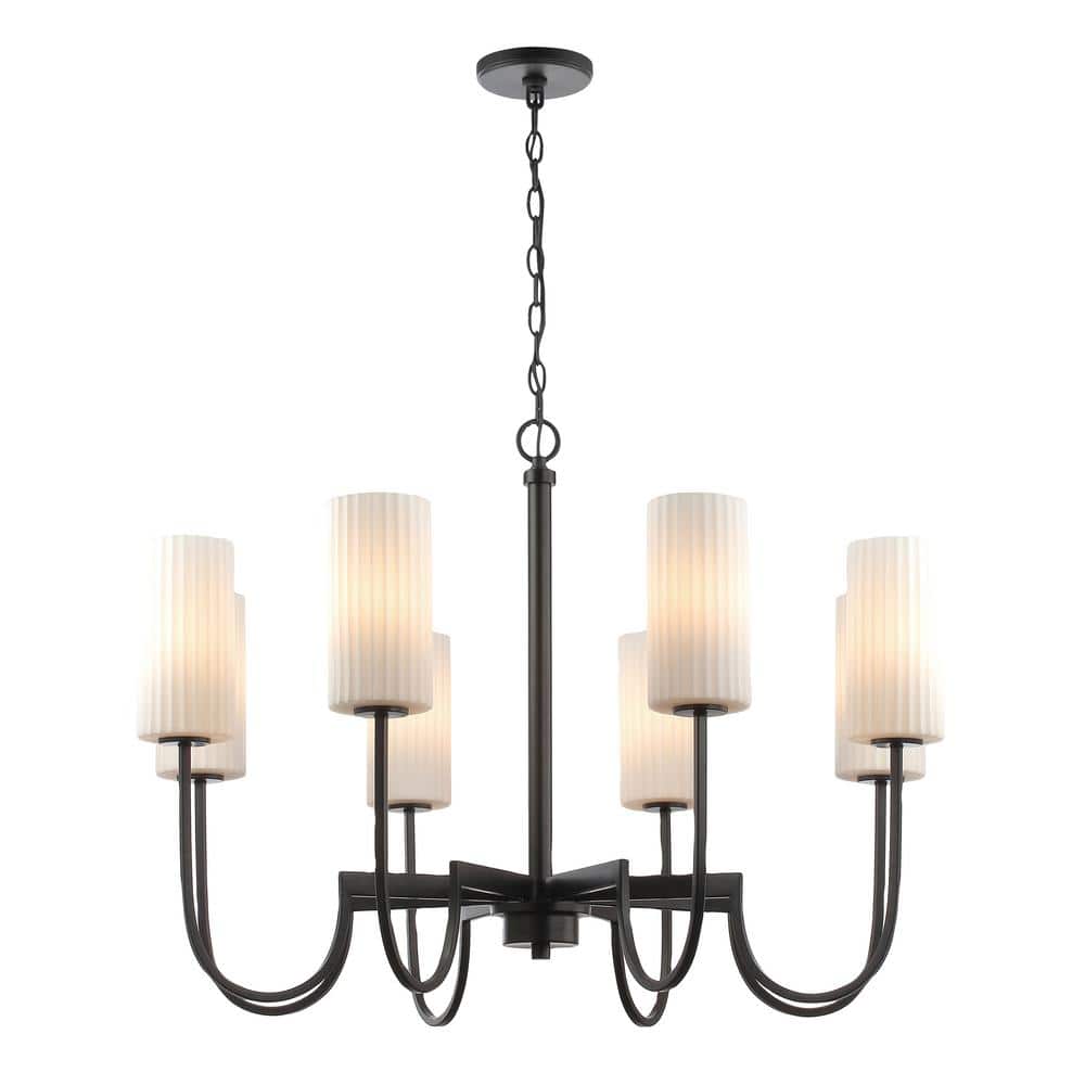 Regular price $411.728-Light Matte Black Chandelier with White Glass Shades