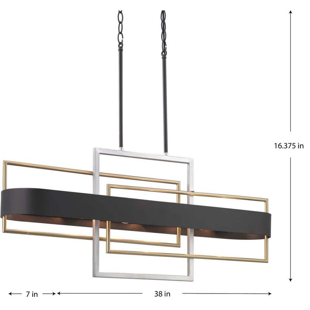Illuminate your space with the stunning Adagio Collection 6-Light Chandelier by Progress Lighting. Its classic matte black finish and geometric design elements create a modern focal point ideal for luxe and contemporary interiors. Perfect for dining areas or living rooms, this chandelier offers both elegance and functionality.