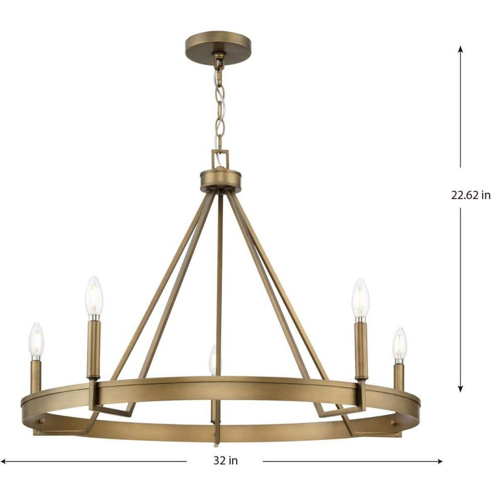 Progress Lighting Aleswith Collection 32 in. 5-Light Aged Bronze Farmhouse Chandelier for Dining Room, Great Room and amp, Living Room