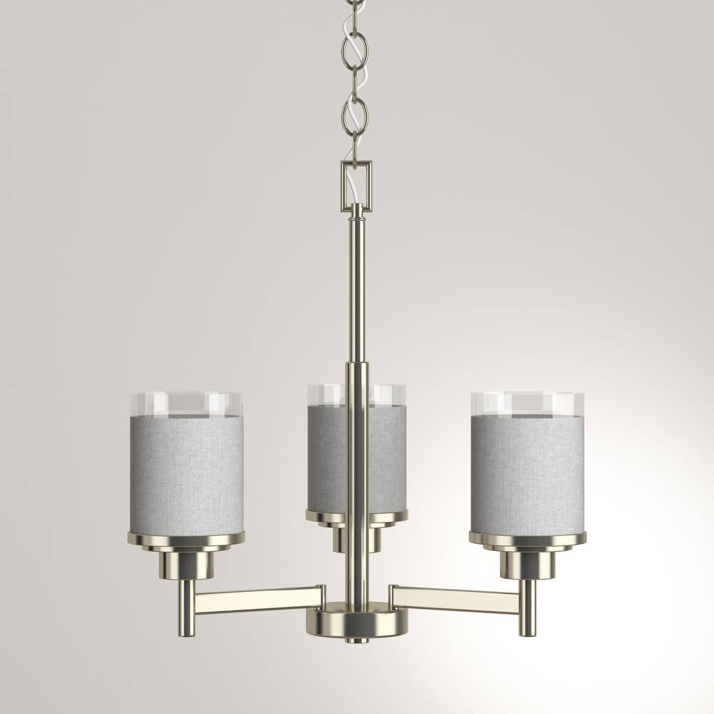 Progress Lighting Alexa Collection 3-Light Brushed Nickel Etched Linen With Clear Edge Glass Modern Chandelier Light