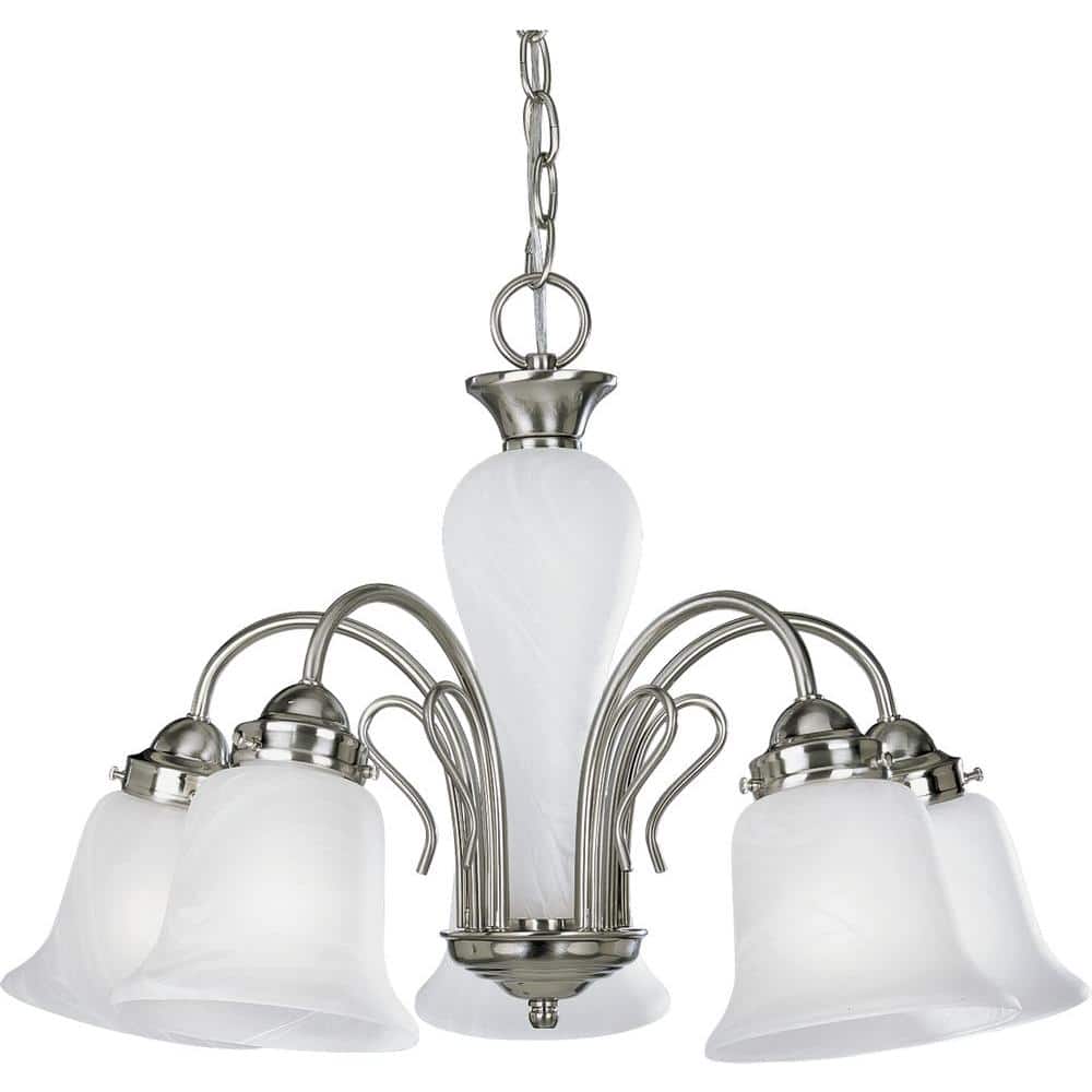 Progress Lighting Bedford Collection 5-Light Brushed Nickel Etched Alabaster Glass Traditional Chandelier Light