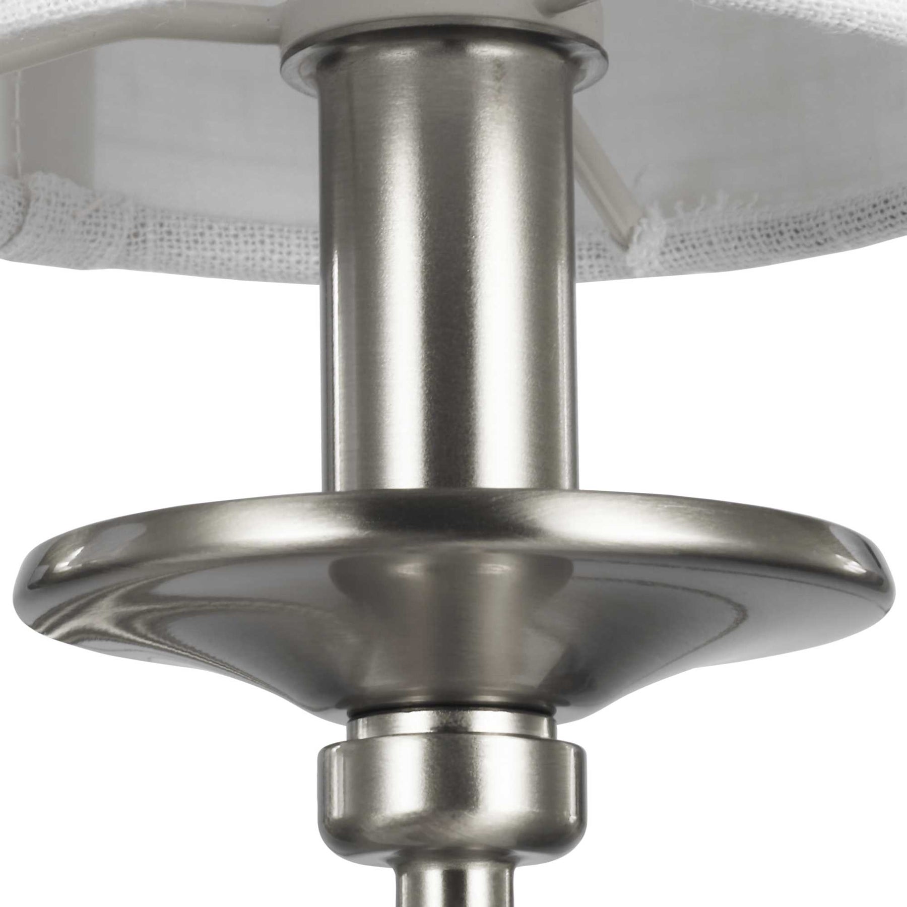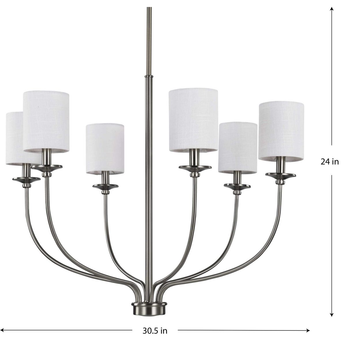 Bring a touch of transitional elegance to your home with the Bonita 6-Light Brushed Nickel Chandelier from Progress Lighting. Its exquisite design features z sophisticated brushed nickel finish and crisp white linen shades, perfect for elevating the ambiance of dining rooms, kitchens, or foyers.
