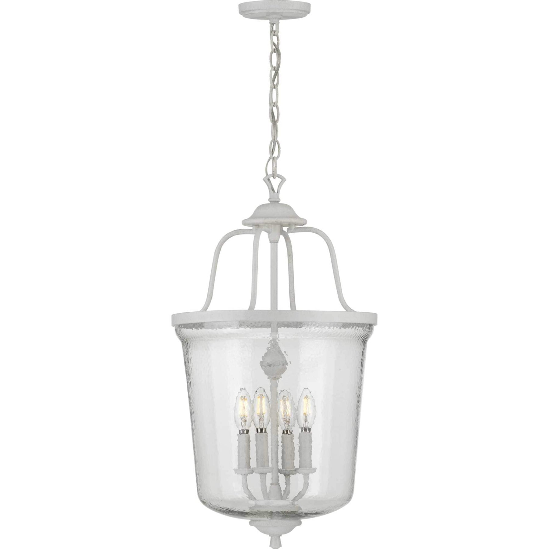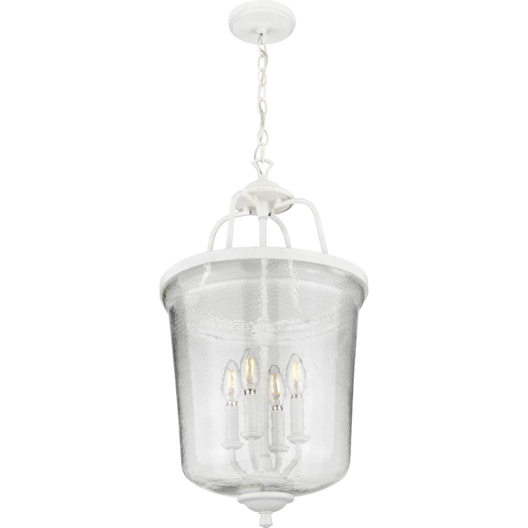 Progress Lighting Bowman 4-Light Cottage White Coastal Clear Glass Bell Medium Hanging Pendant Light