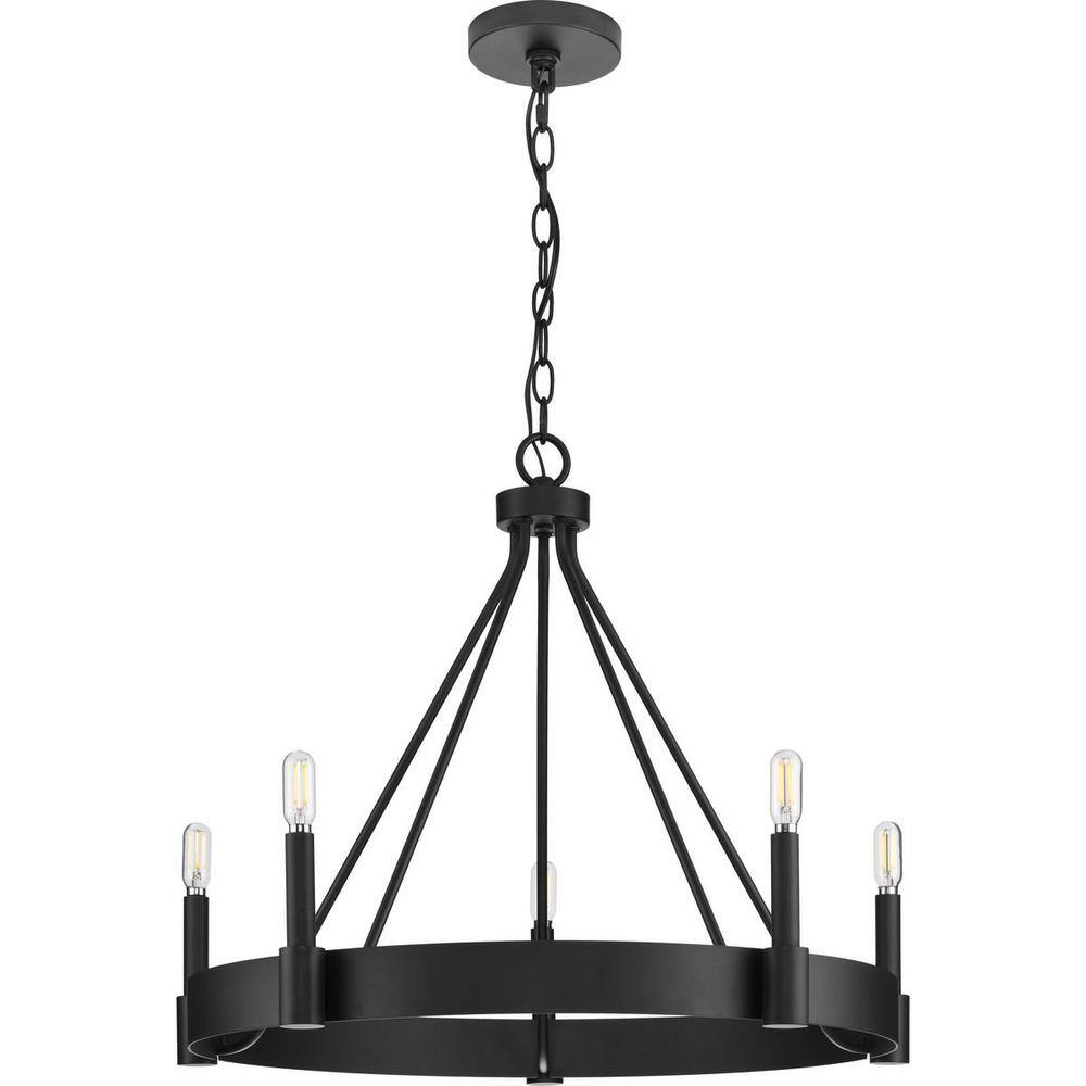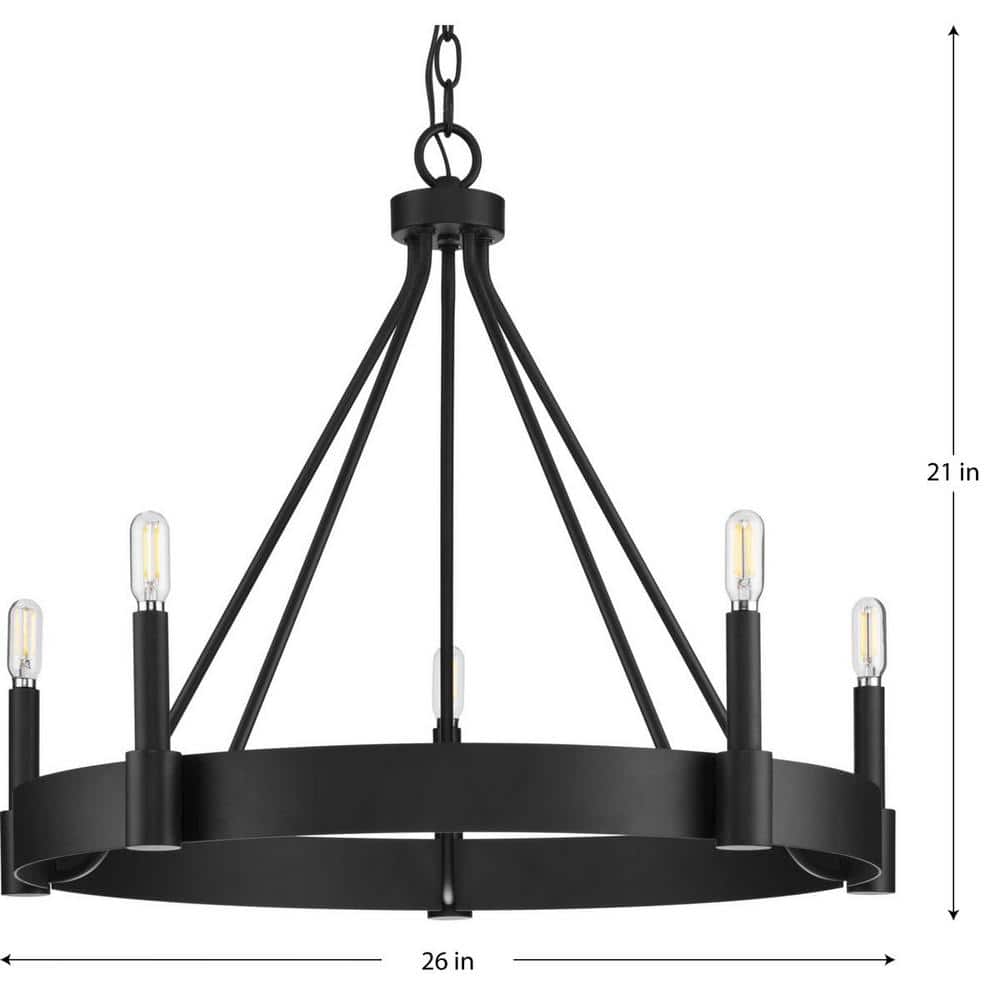 Progress Lighting Breckenridge Collection 26 in. 5-Light Matte Black Rustic Farmhouse Chandelier