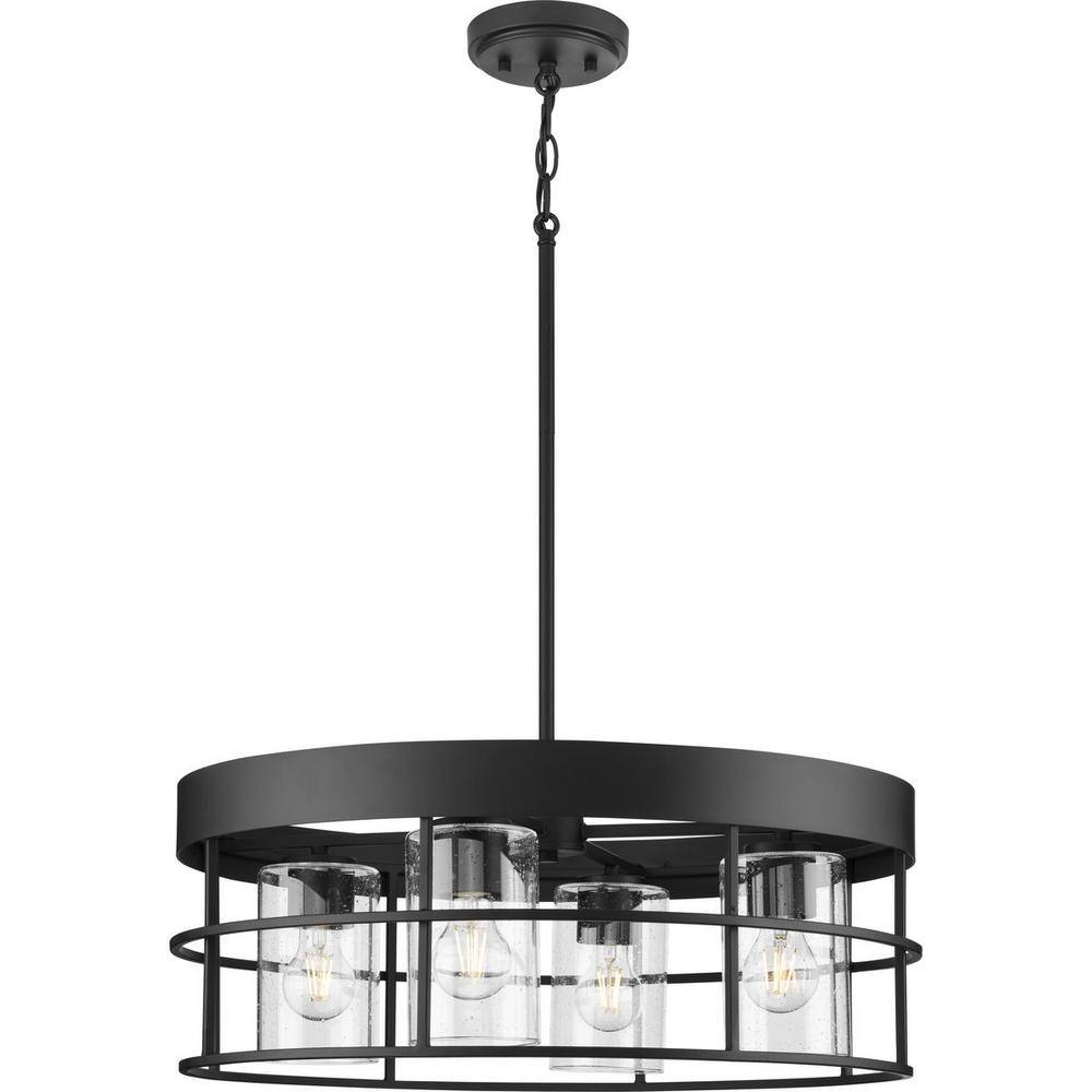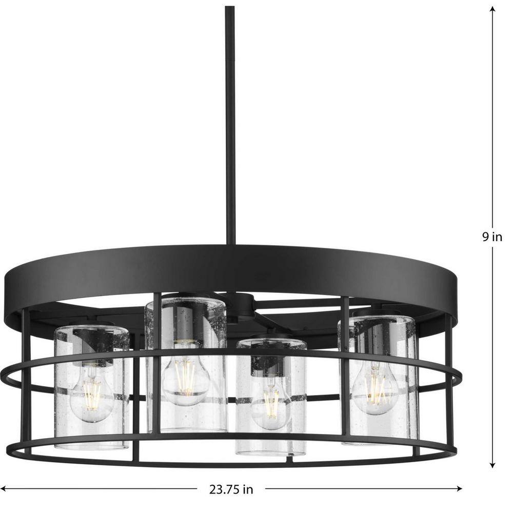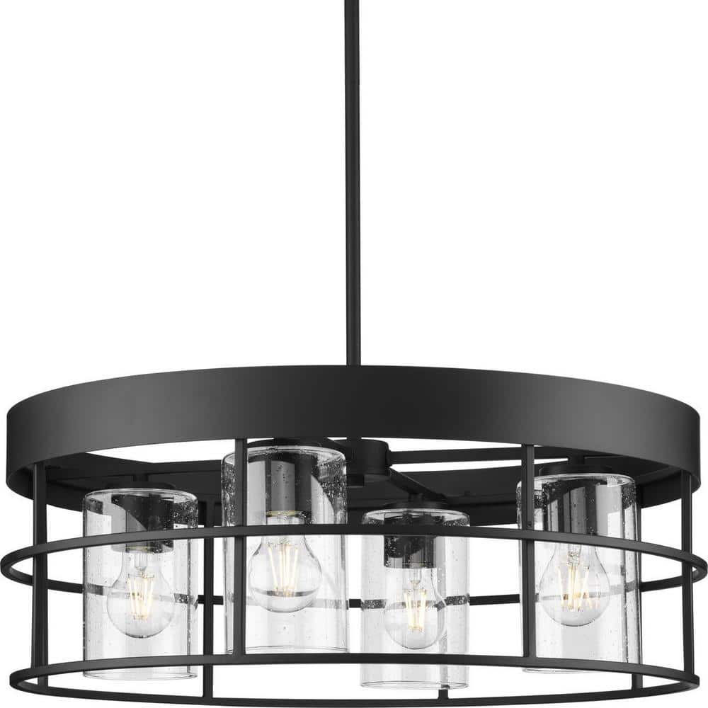 Progress Lighting Burgess Collection 24 in. 4-Light Matte Black Modern Farmhouse Chandelier with Clear Seeded Glass Shades