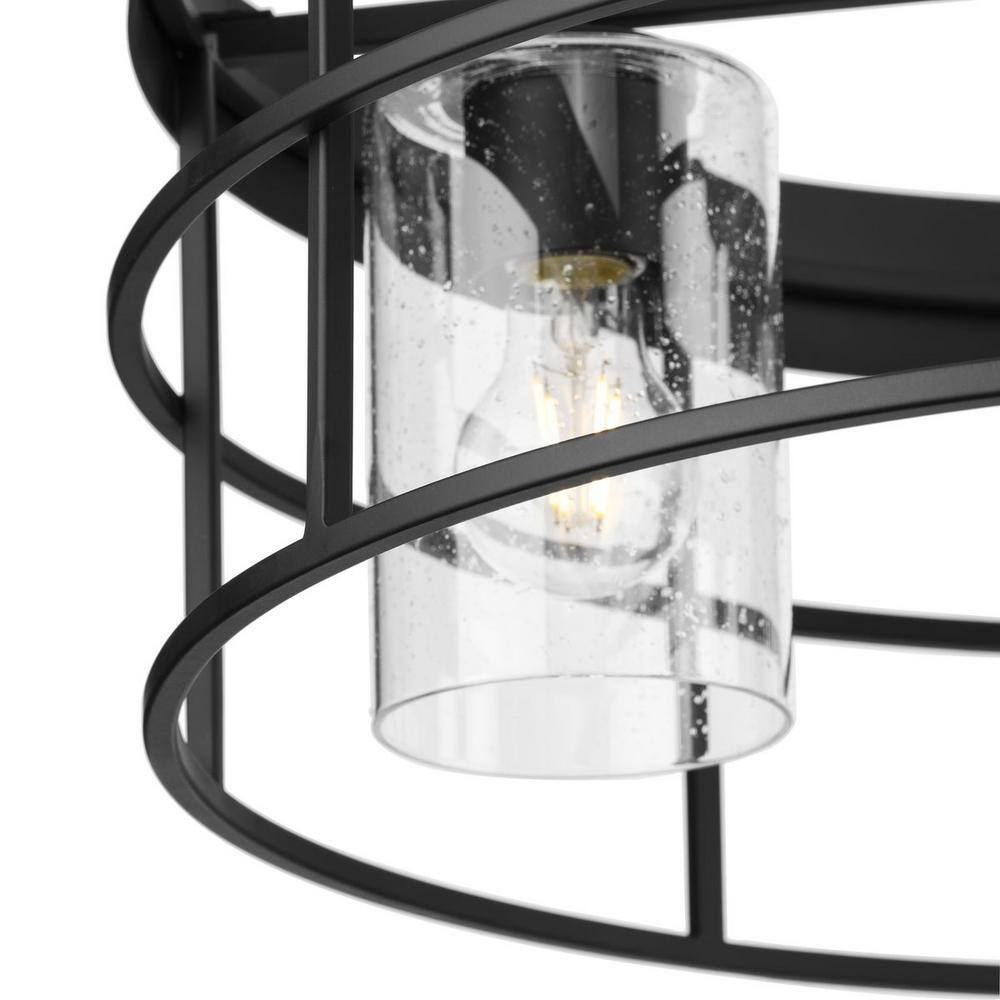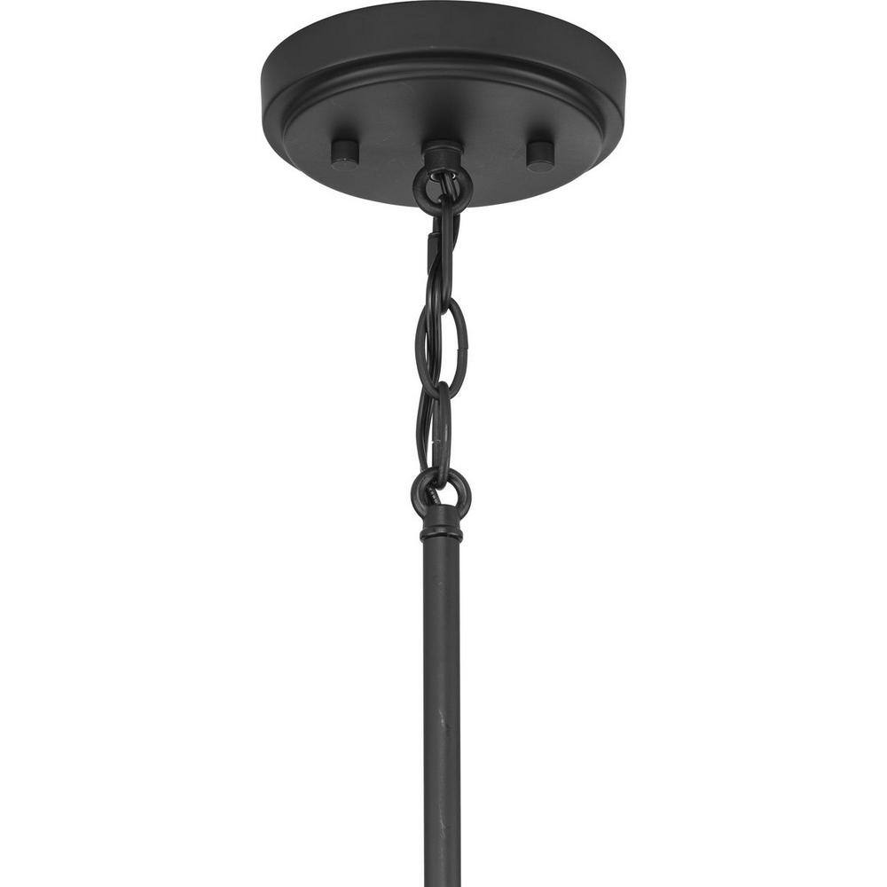 The Progress Lighting Burgess Collection 4-Light Matte Black Chandelier boasts a modern farmhouse design that's perfect for a rustic or urban industrial aesthetic. Its geometric frame and clear seeded glass shades create a warm and inviting atmosphere, making it an ideal centerpiece for dining rooms, foyers, or bedrooms. With its adaptable installation options and compatibility with dimmable bulbs, this fixture provides both functionality and style.