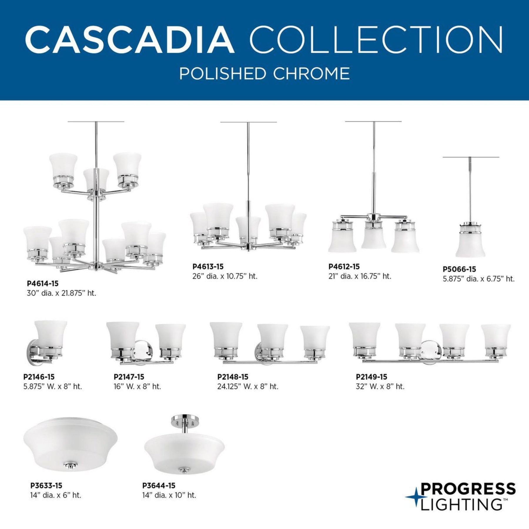 Illuminate your space with the Cascadia 9-Light Polished Chrome Chandelier by Progress Lighting, a chic blend of coastal allure and modern elegance. Its polished chrome finish and etched glass shades create a sophisticated focal point, perfect for enhancing your dining room or any large living area.