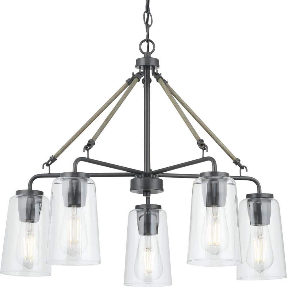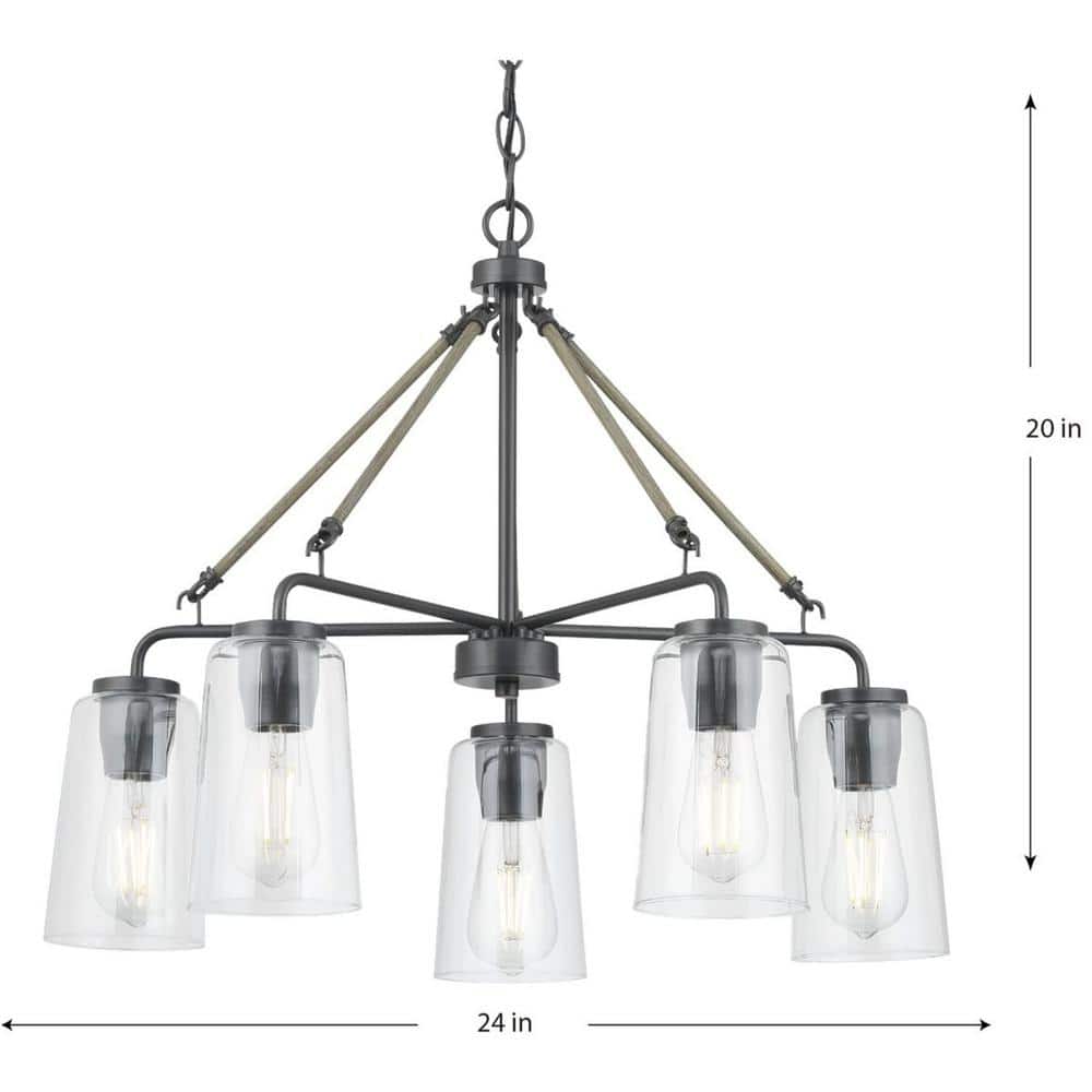 Progress Lighting Cashiers 24 in. 5-Light Graphite Chandelier with Clear Glass Shades