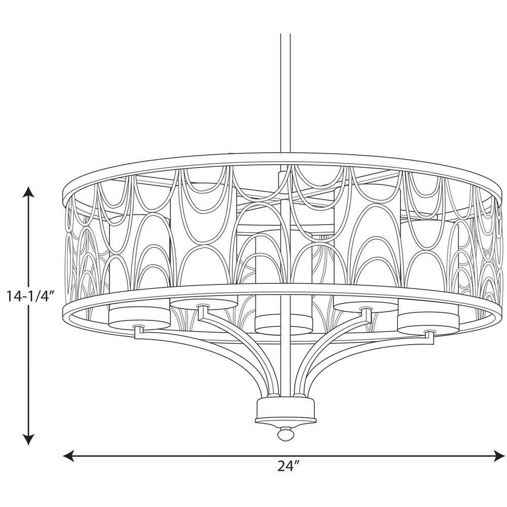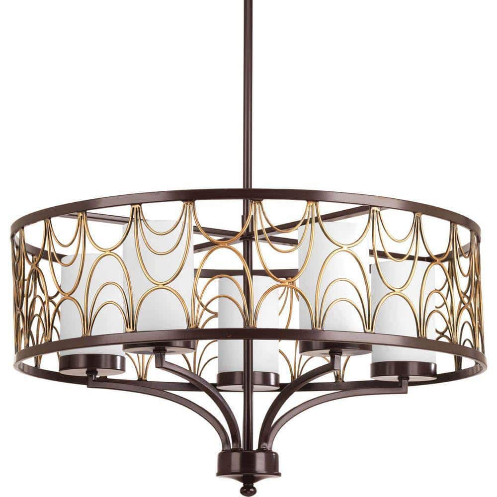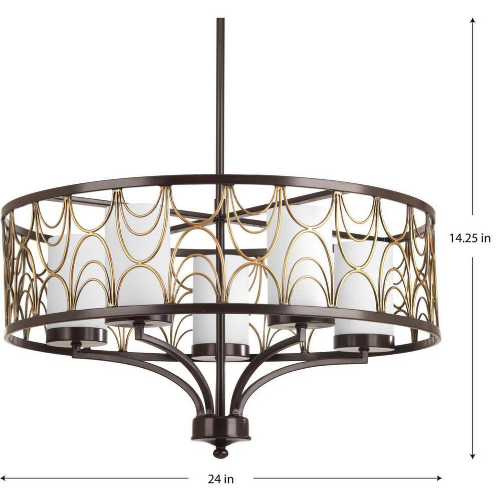 Progress Lighting Cirrine Collection 5-Light Antique Bronze Etched White Glass Global Chandelier Light