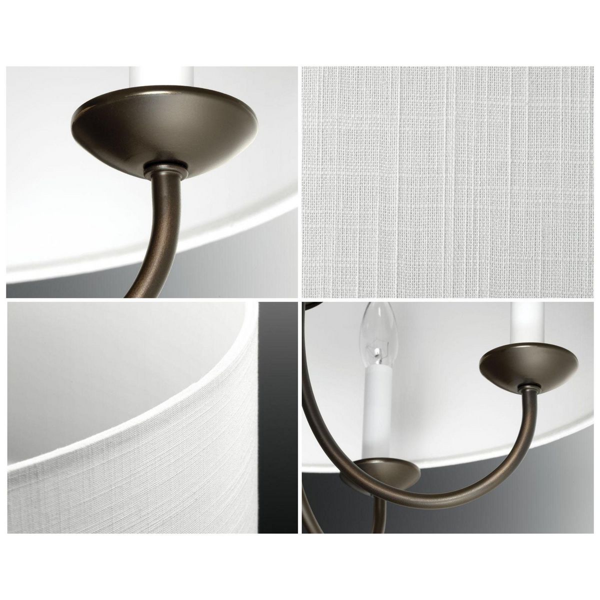 Illuminate your space with the elegant Drum Shade 5-Light Transitional Chandelier from Progress Lighting. Featuring an antique bronze finish and a crisp white fabric shade, this chandelier adds a touch of sophistication to any room, embodying both style and functionality.