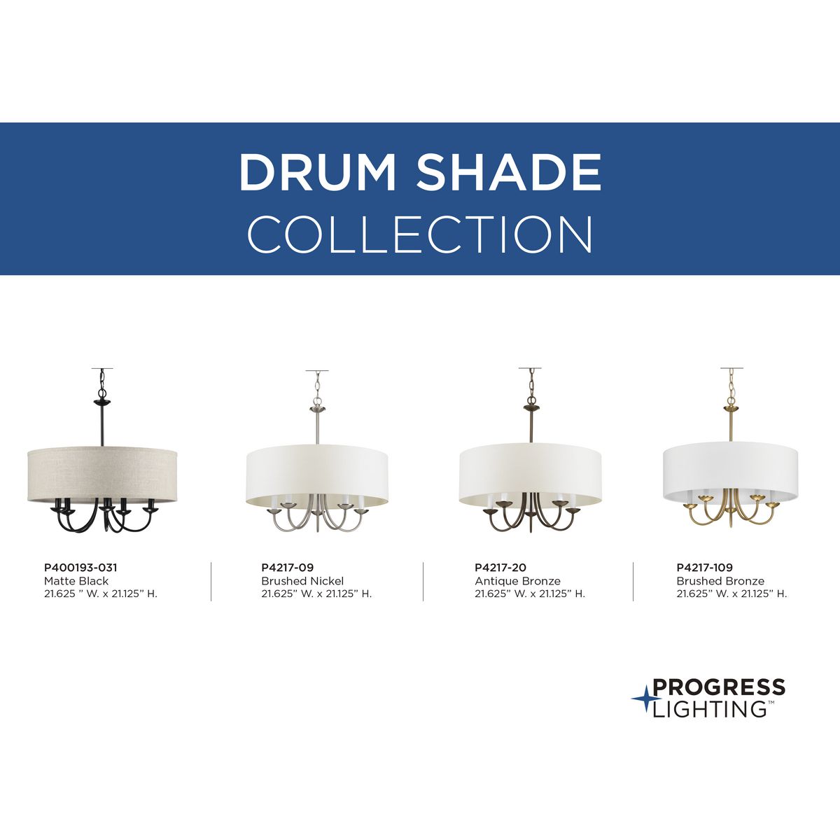 Progress Lighting Drum Shade 5-Light Brushed Nickel Transitional Chandelier