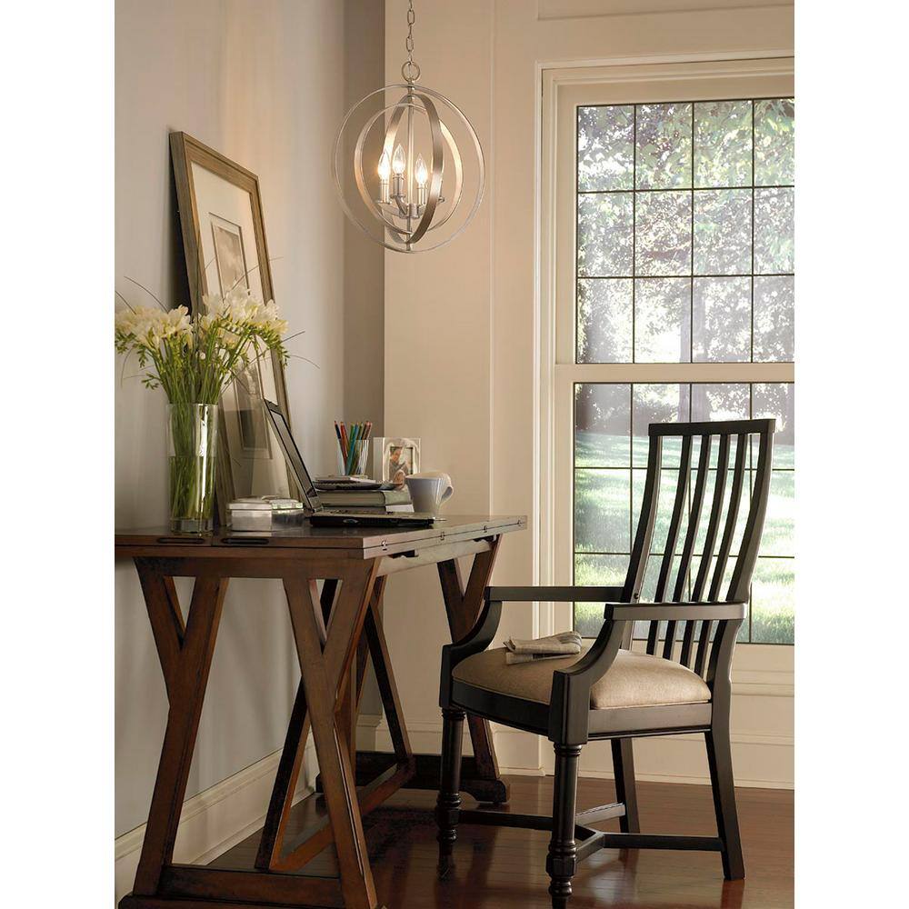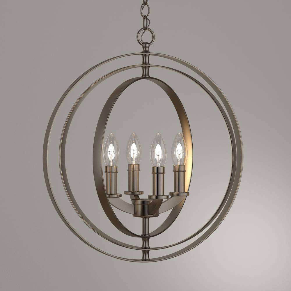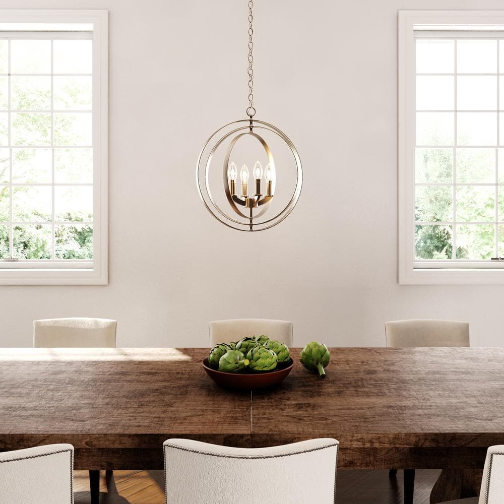 Illuminate your space with the sophisticated Equinox 4-Light Orb Pendant by Progress Lighting. Designed with concentric pivoting rings and finished in elegant burnished silver, this fixture adds modern flair and versatility to any room. Ideal for foyers, dining areas, or over kitchen islands, it provides a striking focal point wherever you choose to install it.