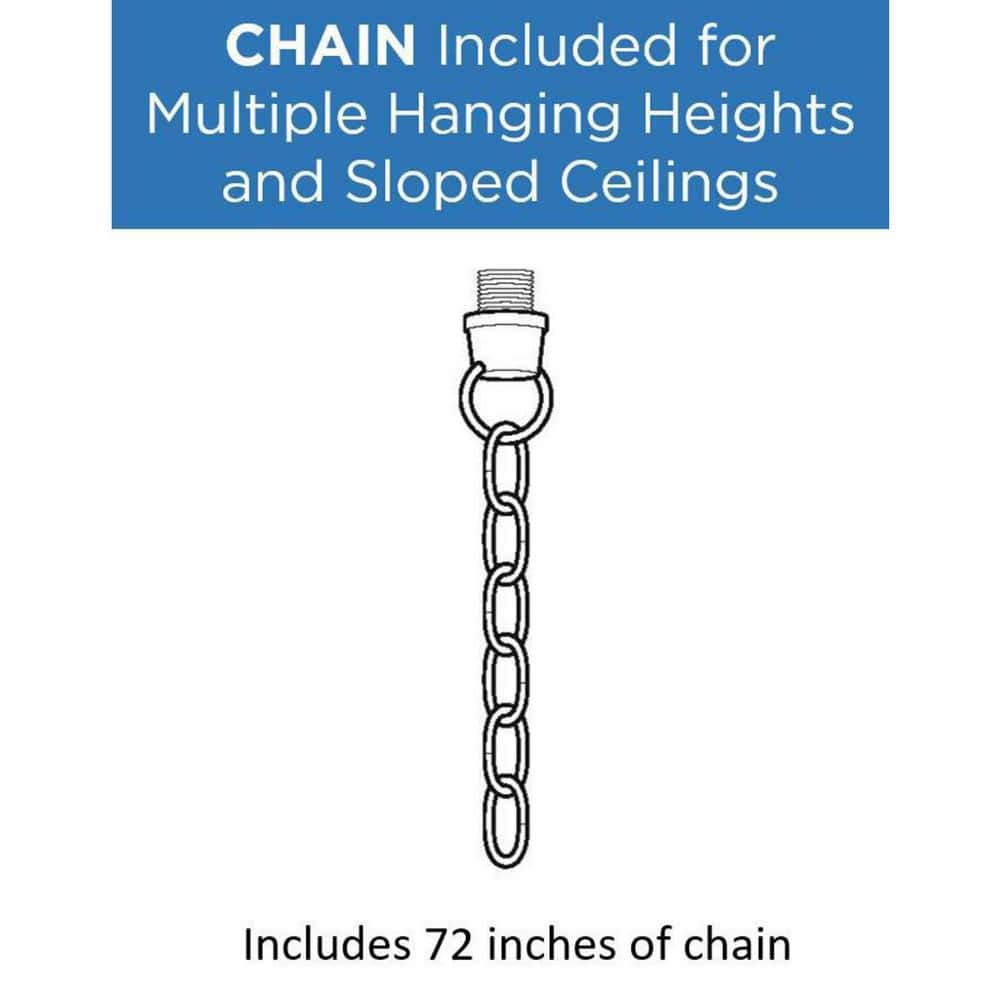 A: The chandelier includes a 72-inch chain, allowing you to adjust the hanging height to suit your room's dimensions and design preference.