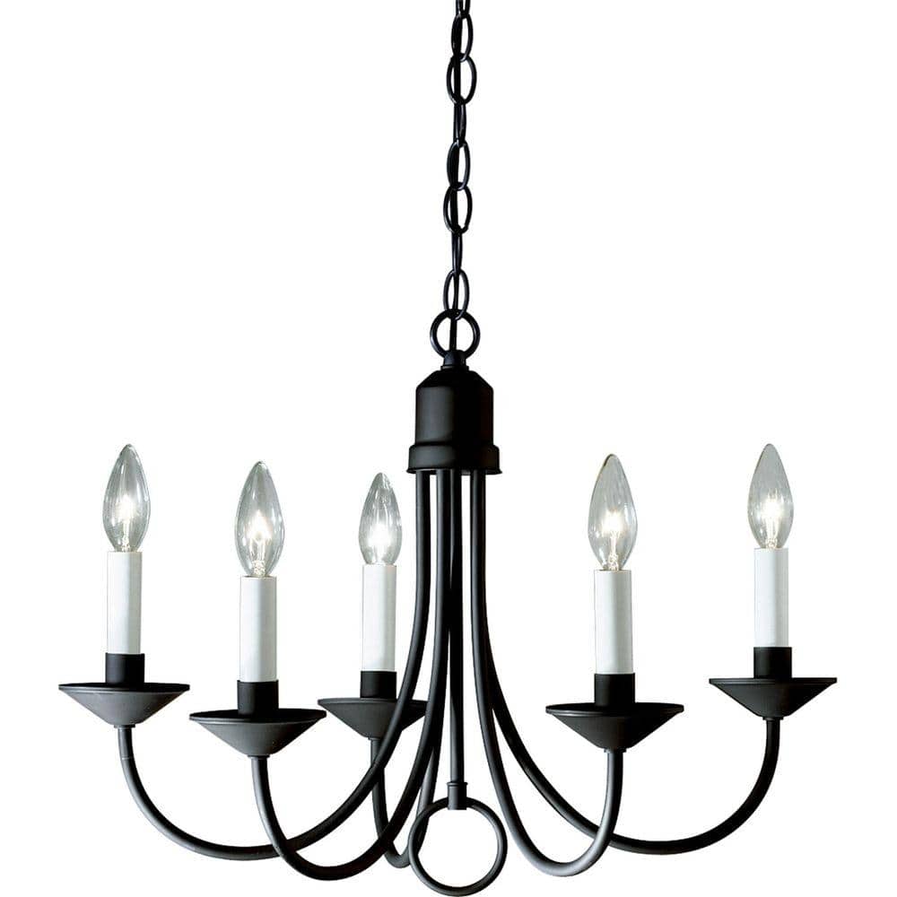 Progress Lighting 5-Light Black Chandelier with White Candle Sleeves