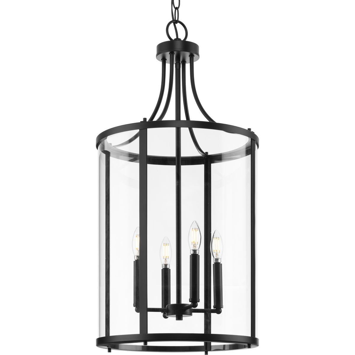 Progress Lighting Gilliam 4-Light Matte Black Farmhouse Clear Glass Cylinder Medium Hanging Pendant Light