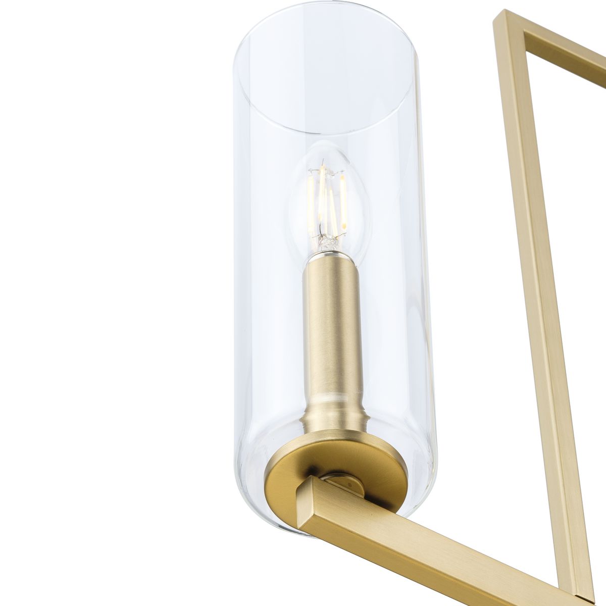 The Glennaire Chandelier is a symphony of modern elegance and traditional charm, where brushed gold meets the clarity of glass to create a centerpiece that transforms any dining area or kitchen island into a haven of light. Its intertwined square silhouette not only draws the eye upward, accentuating spaciousness, but invites admiration with its inherent glow. Style it above an expansive dining table for an illuminated conversation starter, or bask your living room in its ambient grace. This dazzling fixture is more than illumination; it is an embodiment of luxury and sophisticated living.