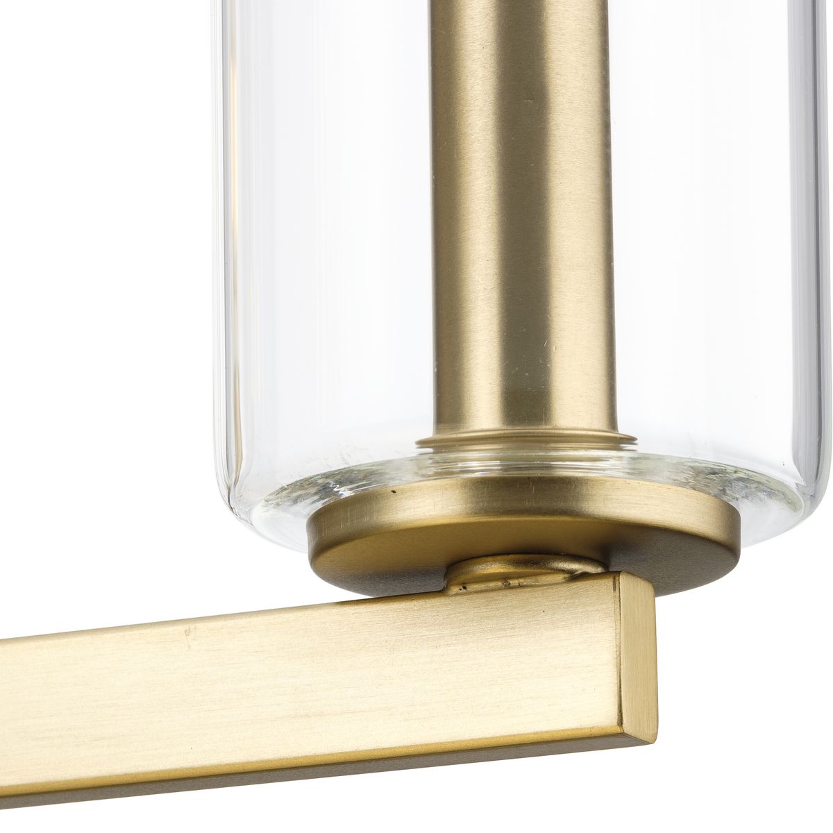 Elevate your space with the Glennaire 4-Light Brushed Gold Chandelier by Progress Lighting. This modern masterpiece seamlessly blends contemporary elegance with functionality, featuring a sleek silhouette and clear glass shades that deliver stunning ambient illumination to any room. Ideal for modern and traditional settings, this chandelier is both a statement piece and a practical light source.