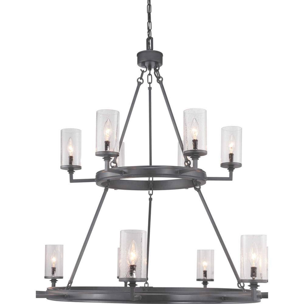Progress Lighting Gresham Collection 15-Light Graphite Clear Seeded Glass Farmhouse Chandelier Light