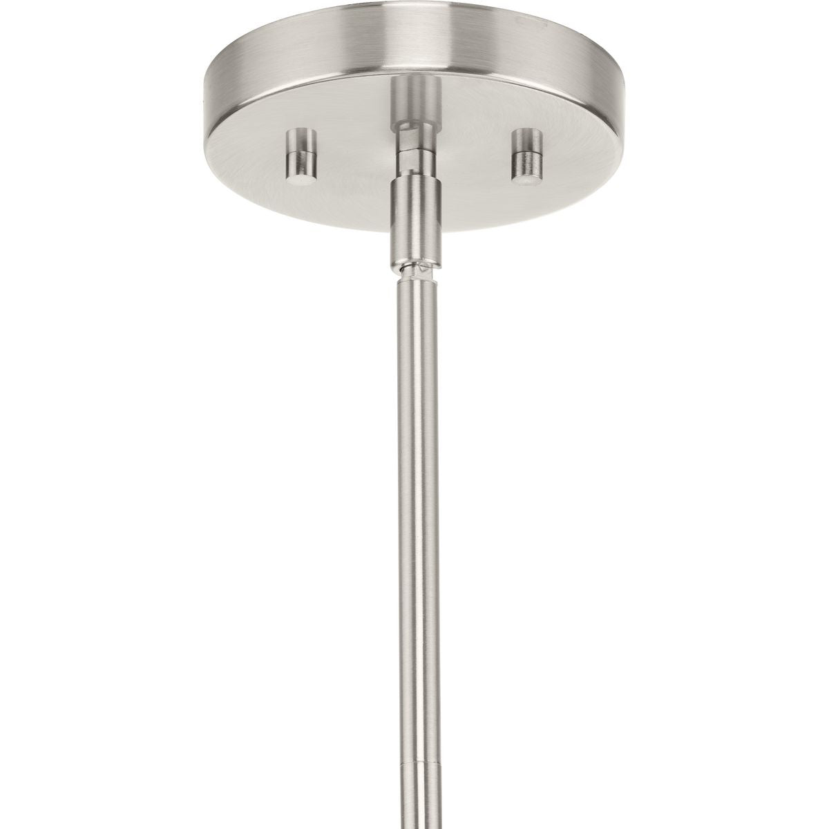 Embrace the elegant fusion of modern and organic design with the Progress Lighting Haas 4-Light Brushed Nickel Chandelier. This stunning fixture features etched opal glass globes and a bold linear structure, perfect for enhancing mid-century modern and contemporary spaces. Its versatile design allows for flexible installation as a chandelier or semi-flush ceiling light.